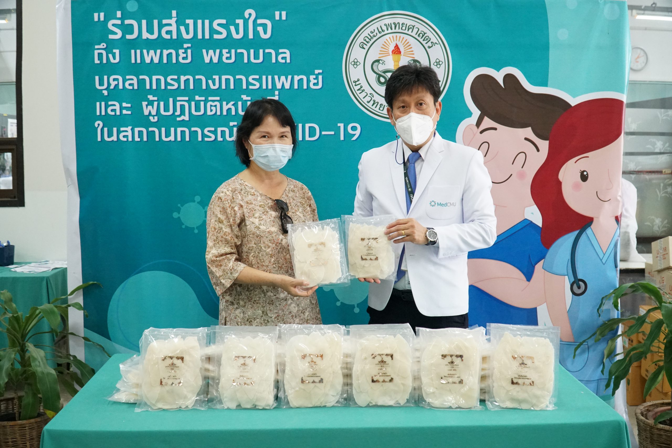 คุณพูนสุข บัววิรัตน์เลิศ ในนามมูลนิธิอาจารย์วารินทร์ บัววิรัตน์เลิศ มอบมะพร้าวแก้ว จำนวน 55 ห่อ ให้แก่ทีมแพทย์ พยาบาล และบุคลากรที่ปฏิบัติหน้าที่ในสถานการณ์โควิด-19 ของโรงพยาบาลมหาราชนครเชียงใหม่ คณะแพทยศาสตร์ มช.โดยมี รศ.นพ.ณัฐพงศ์ โฆษชุณหนันท์ รองคณบดีคณะแพทยศาสตร์ มช. รับมอบ เมื่อวันที่ 20 พฤษภาคม 2564 ณ บริเวณโถง ชั้น 1 อาคารราชนครินทร์ คณะแพทยศาสตร์ มช.