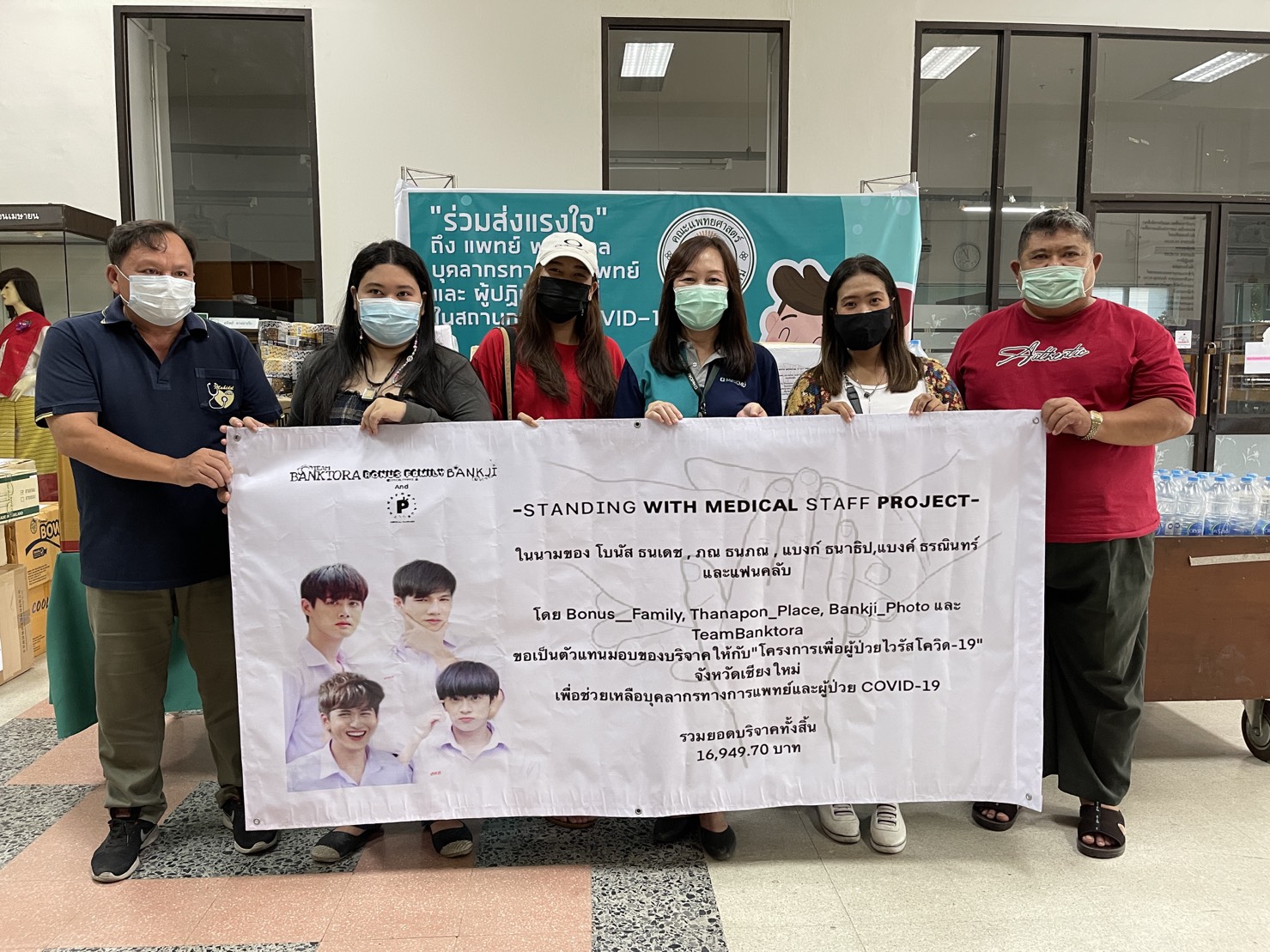 โบนัส ธนเดช, ภณ ธนภณ, แบงก์ ธนาธิป, แบงค์ ธรณินทร์ และแฟนคลับ มอบอุปกรณ์การแพทย์ และของบริโภค มูลค่า 16,949.70 บาท ให้แก่ทีมแพทย์ พยาบาล และบุคลากรที่ปฏิบัติหน้าที่ในสถานการณ์โควิด-19 ของโรงพยาบาลมหาราชนครเชียงใหม่ คณะแพทยศาสตร์ มช. โดยมีคุณอรวรรณ เร่งเร็ว หัวหน้างานบริหารทั่วไป รับมอบ เมื่อวันที่ 22 พฤษภาคม 2564 ณ บริเวณโถง ชั้น 1 อาคารราชนครินทร์ คณะแพทยศาสตร์ มช.