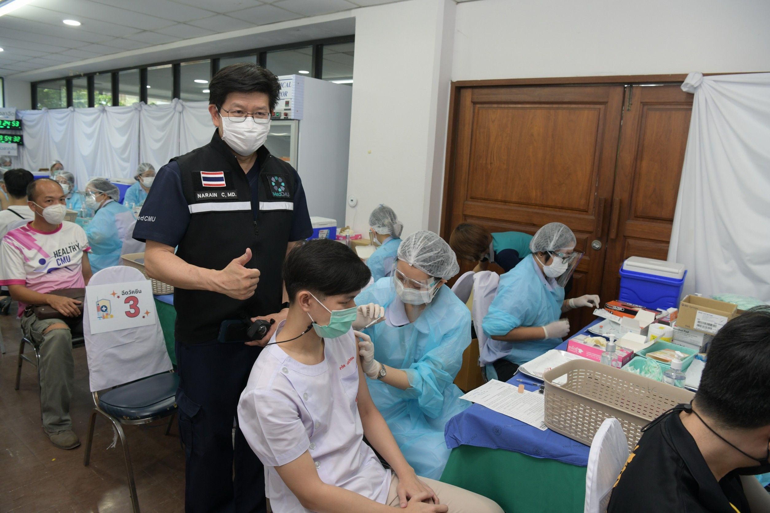 ในส่วนของนักศึกษามหาวิทยาลัยเชียงใหม่ ได้มีการลงทะเบียนฉีดวัคซีนไว้ล่วงหน้าเป็นที่เรียบร้อยแล้วพร้อมบุคลากรบางส่วน รวมกว่า 35,000 คน คาดว่าในเดือนมิถุนายน ถ้าวัคซีนมาทันตามที่ได้วางแผนไว้ก็จะมีการฉีดในกลุ่มนี้ หลังจากนี้เมื่อฉีดเสร็จสิ้นแล้วก็จะเป็นในส่วนของภาคประชาชนในจังหวัดเชียงใหม่ในรอบต่อไป โดยใช้หอประชุมมหาวิทยาลัยเชียงใหม่ โดยทั้งหมดนี้เราได้รับความร่วมมือจากคณะแพทยศาสตร์ , สถาบันวิจัยวิทยาศาสตร์สุขภาพ , คณะพยาบาลศาสตร์ และคณะต่างๆมาช่วยกันทำให้เราครอบคลุมถึงจำนวนประชากรที่จะมาฉีดวัคซีนได้อย่างรวดเร็ว ขอเชิญชวนทุกคนให้มาฉีดวัคซีนเพื่อสร้างภูมิต้านทานเตรียมความพร้อมเพื่อรองรับสิ่งที่อาจจะเกิดขึ้นในอนาคตซึ่งตอนนี้คนส่วนมากก็ได้เริ่มฉีดวัคซีนกันแล้วผมเองก็ฉีดแล้วไม่มีผลข้างเคียงแต่อย่างใด”