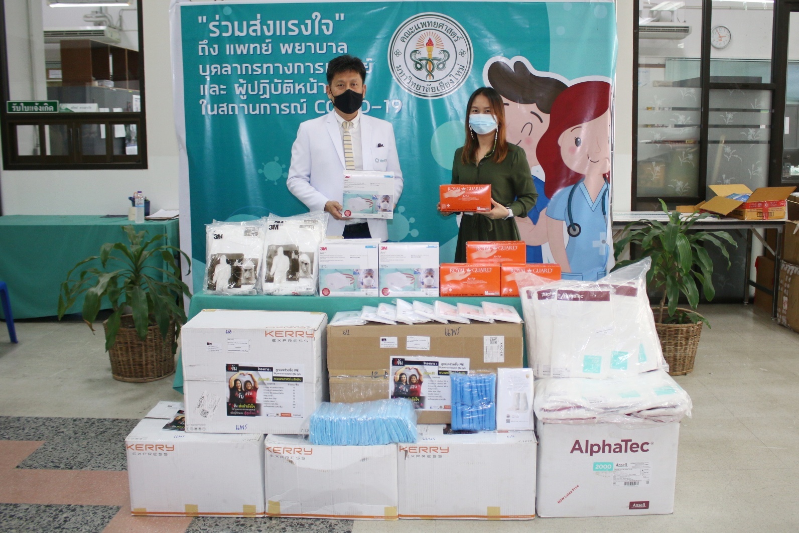 ลูกเพจอีจัน มอบ Cover All Lakeland จำนวน 110 ชิ้น, Leg Cover จำนวน 50 ชิ้น, Blue shoe cover จำนวน 50 ชิ้น, ถุงมือ จำนวน 20 กล่อง, หน้ากาก N95 จำนวน 200 ชิ้น และเอี๊ยมพลาสติก จำนวน 60 ชิ้น ให้แก่ทีมแพทย์ พยาบาล และบุคลากรที่ปฏิบัติหน้าที่ในสถานการณ์โควิด-19 ของโรงพยาบาลมหาราชนครเชียงใหม่ คณะแพทยศาสตร์ มช.โดยมี รศ.นพ.ณัฐพงศ์ โฆษชุณหนันท์ รองคณบดีคณะแพทยศาสตร์ มช. รับมอบ เมื่อวันที่ 7 มิถุนายน 2564 ณ บริเวณโถงชั้น 1 อาคารราชนครินทร์ คณะแพทยศาสตร์ มช.