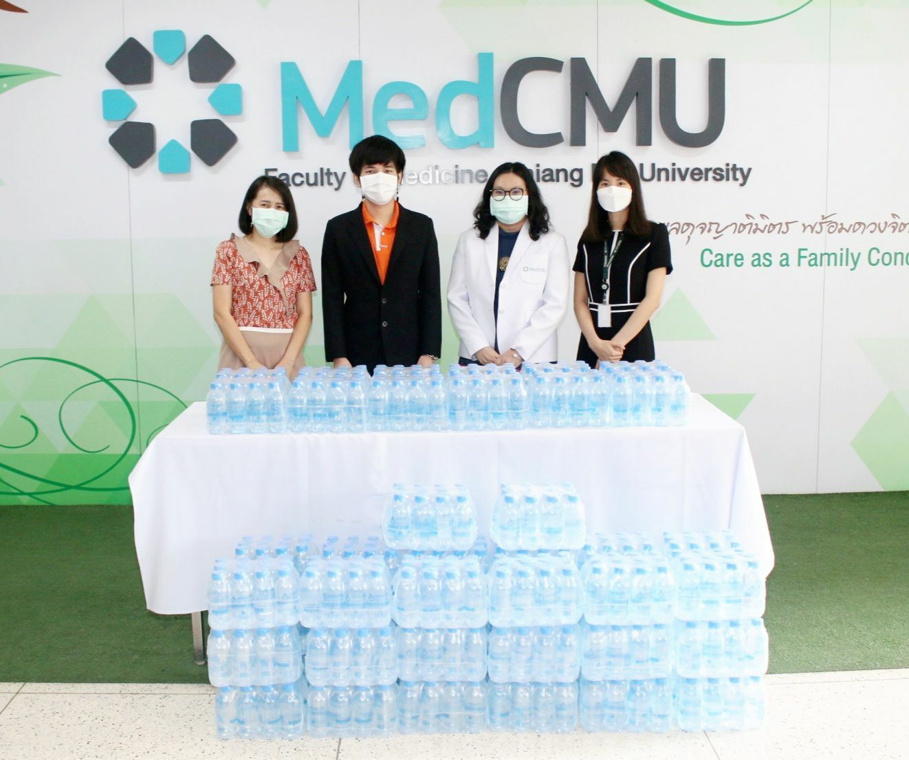 ผู้แทนคุณเดชวิมล สุมาวงศ์ อธิบดีผู้พิพากษาภาค 5 บริจาคน้ำดื่ม จำนวน 600 ขวด ให้แก่ทีมแพทย์ พยาบาล และบุคลากรที่ปฏิบัติหน้าที่ในสถานการณ์โควิด-19 ของโรงพยาบาลมหาราชนครเชียงใหม่ คณะแพทยศาสตร์ มช. โดยมี ผศ.ดร.อริสา บอนเนชช์ รองคณบดีคณะแพทยศาสตร์ มช. รับมอบ เมื่อวันที่ 10 มิถุนายน 2564 ณ บริเวณโถงชั้น 1 อาคารบุญสม มาร์ติน คณะแพทยศาสตร์ มช.