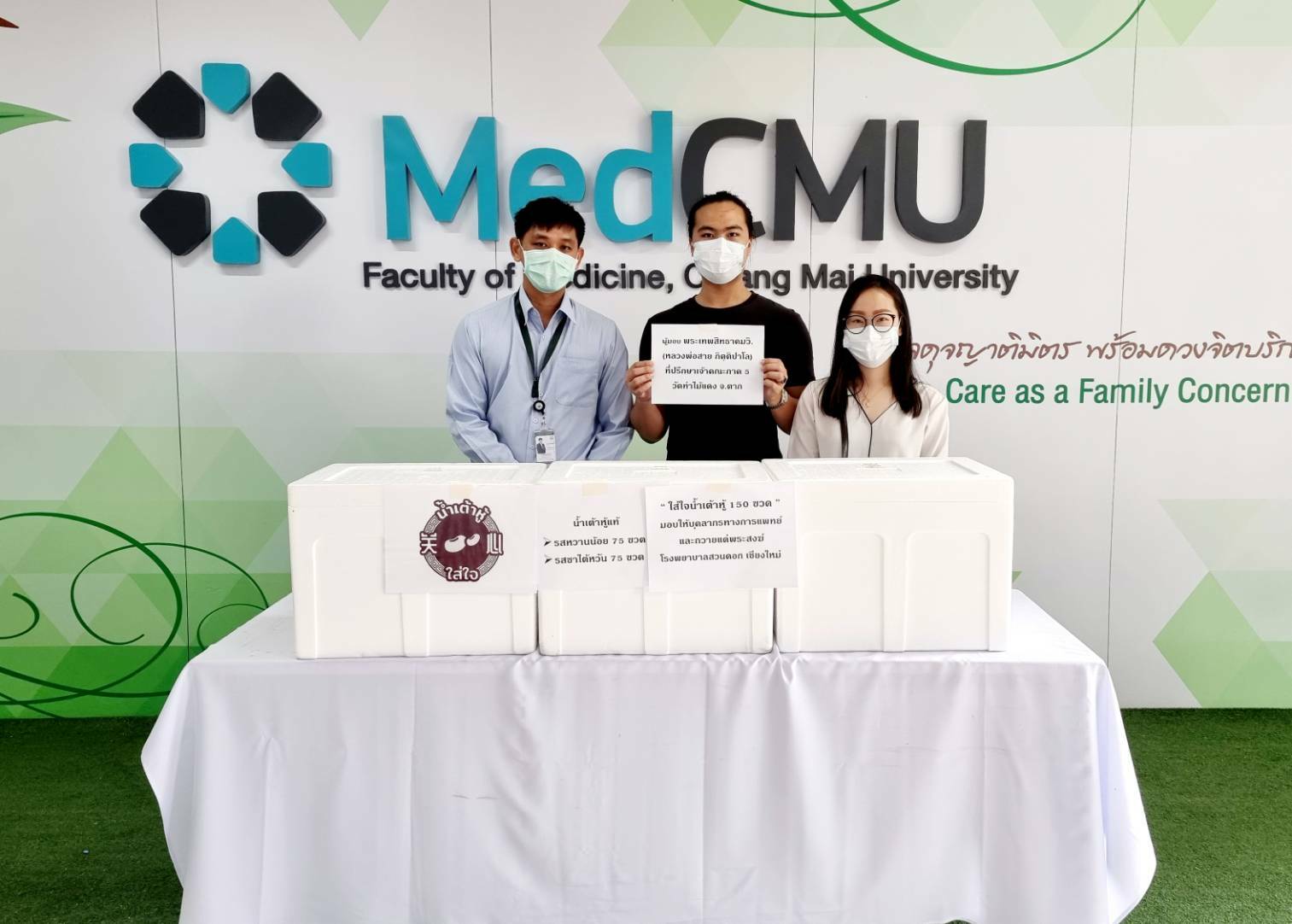 ผู้แทน พระเทพสิทธาคมวิ. (หลวงพ่อสาย กิตฺติปาโล) ที่ปรึกษาเจ้าคณะภาค 5 วัดท่าไม้แดง จังหวัดตาก บริจาคน้ำเต้าหู้ จำนวน 100 ขวด ให้แก่ พระภิกษุสงฆ์ อาพาธ ทีมแพทย์และบุคลากรที่ปฏิบัติหน้าที่ ณ โรงพยาบาลสงฆ์ แห่งโรงพยาบาลมหาราชนครเชียงใหม่ โดยมี ผศ.นพ. ธวัชชัย มั่นอ่ำ ผู้ช่วยคณบดีคณะแพทยศาสตร์ มหาวิทยาลัยเชียงใหม่ รับมอบเมื่อวันที่ 10 มิถุนายน 2564 ณ บริเวณโถงชั้น 1 อาคารบุญสม มาร์ติน คณะแพทยศาสตร์ มช.