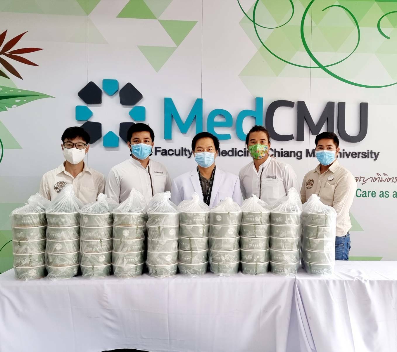 บริษัท ปลูกผักเพราะรักแม่ จำกัด บริจาคสลัดผัก และ อาหารกล่อง จำนวน 100 กล่อง ให้แก่ทีมแพทย์ พยาบาล และบุคลากรที่ปฏิบัติหน้าที่ ในสถานการณ์ COVID-19 ของโรงพยาบาลมหาราชนครเชียงใหม่ คณะแพทยศาสตร์ มช. โดยมี ผศ.นพ.สิทธิชา สิริอารีย์ รองผู้อำนวยการโรงพยาบาลมหาราชนครเชียงใหม่ รับมอบ เมื่อวันที่ 11 มิถุนายน 2564 ณ บริเวณโถงชั้น 1 อาคารบุญสม มาร์ติน คณะแพทยศาสตร์ มช.