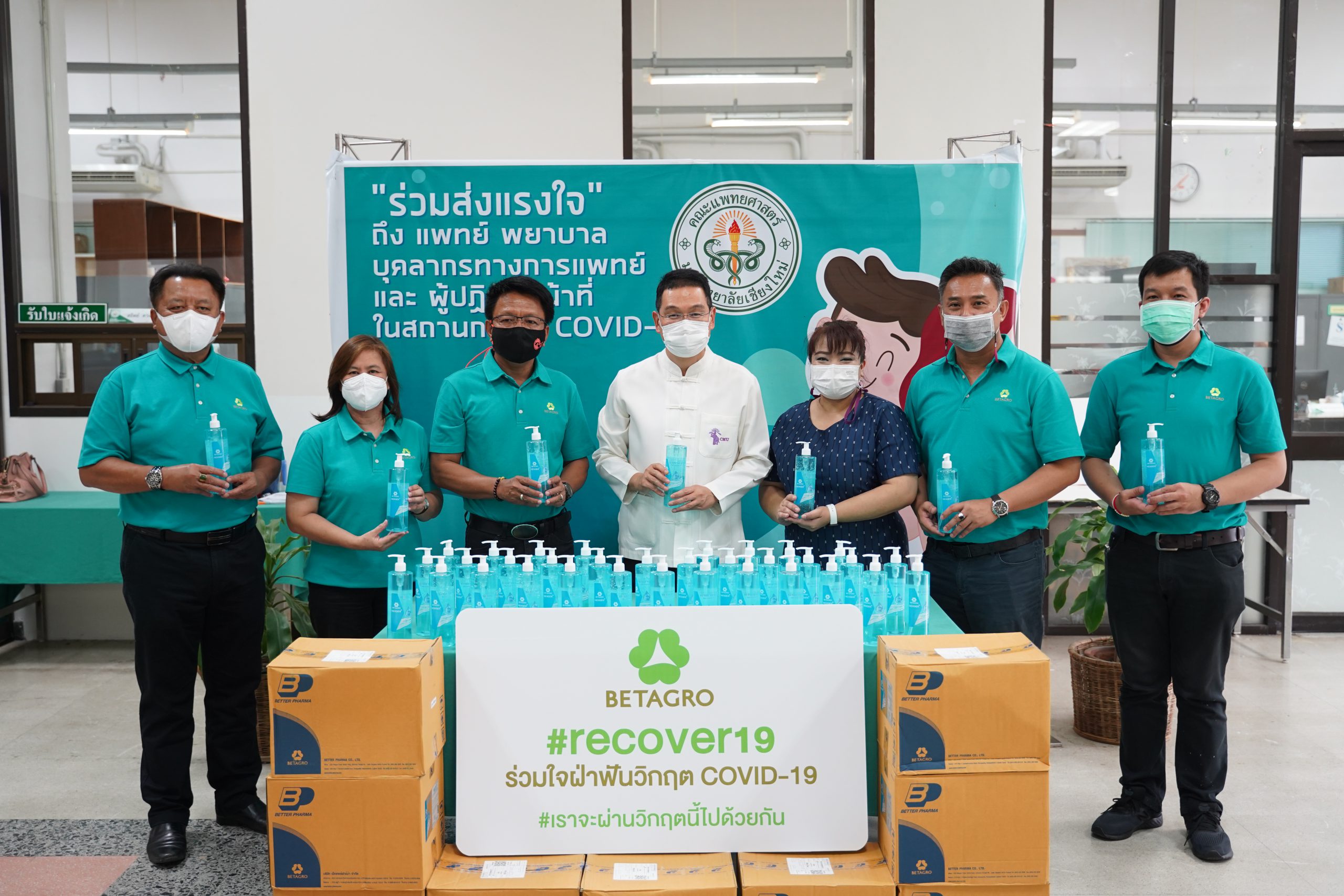 คุณชัยยา มะลิดา ผช.กก.ผจก.ใหญ่ ภาคเหนือตอนบน บริษัท เบทาโกรเกษตร อุตสาหกรรม จำกัด และคณะผู้บริหาร มอบเจลแอลกอฮอล์จำนวน 200 ขวด ให้แก่ทีมแพทย์ พยาบาล และบุคลากรที่ปฏิบัติหน้าที่ในสถานการณ์โควิด-19 ของโรงพยาบาลมหาราชนครเชียงใหม่ คณะแพทยศาสตร์ มช. โดยมี ศ.(เชี่ยวชาญพิเศษ)นพ.บรรณกิจ โลจนาภิวัฒน์ คณบดีคณะแพทยศาสตร์ มช. รับมอบ เมื่อวันที่ 11 มิถุนายน 2564 ณ บริเวณโถงชั้น 1 อาคารราชนครินทร์ คณะแพทยศาสตร์ มช.