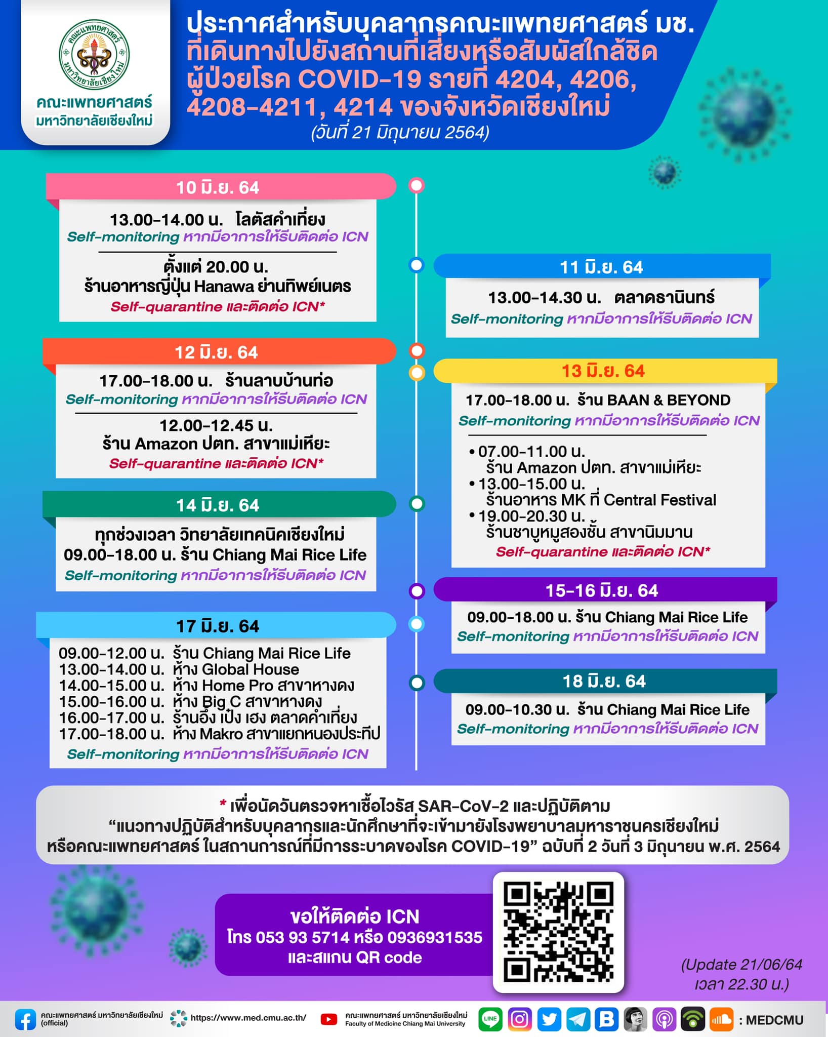 ผู้ป่วยโรค COVID-19 รายที่ 4204, 4206, 4208-4211, 4214 ของจังหวัดเชียงใหม่