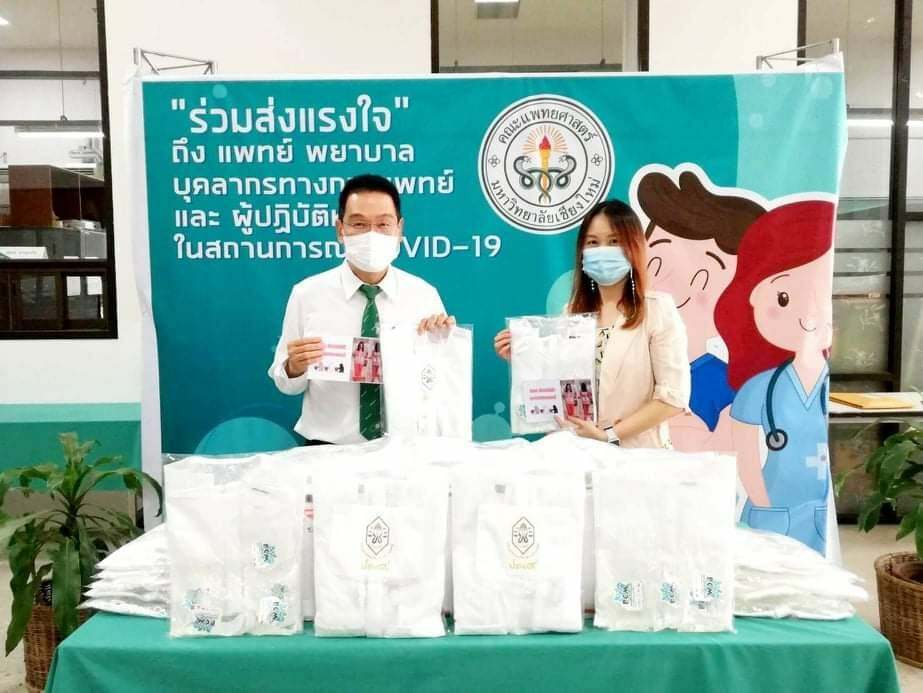 นักศึกษาหลักสูตรประกาศนียบัตรธรรมาภิบาลทางการแพทย์ สำหรับผู้บริหารระดับสูง รุ่นที่ 9 มอบเสื้อกั๊กเย็นใจ ( เสื้อกั๊ก พร้อมด้วย cool pack gel เพื่อใช้สวมติดชุด PPE ระบายความร้อน ) จำนวน 100 ตัว ให้แก่ทีมแพทย์ พยาบาล และบุคลากรที่ปฏิบัติหน้าที่ในสถานการณ์โควิด-19 ของโรงพยาบาลมหาราชนครเชียงใหม่ คณะแพทยศาสตร์ มช. โดยมี ศ.(เชี่ยวชาญพิเศษ)นพ.บรรณกิจ โลจนาภิวัฒน์ คณบดีคณะแพทยศาสตร์ มช. รับมอบ เมื่อวันที่ 23 มิถุนายน 2564 ณ บริเวณโถงชั้น 1 อาคารราชนครินทร์ คณะแพทยศาสตร์ มช.