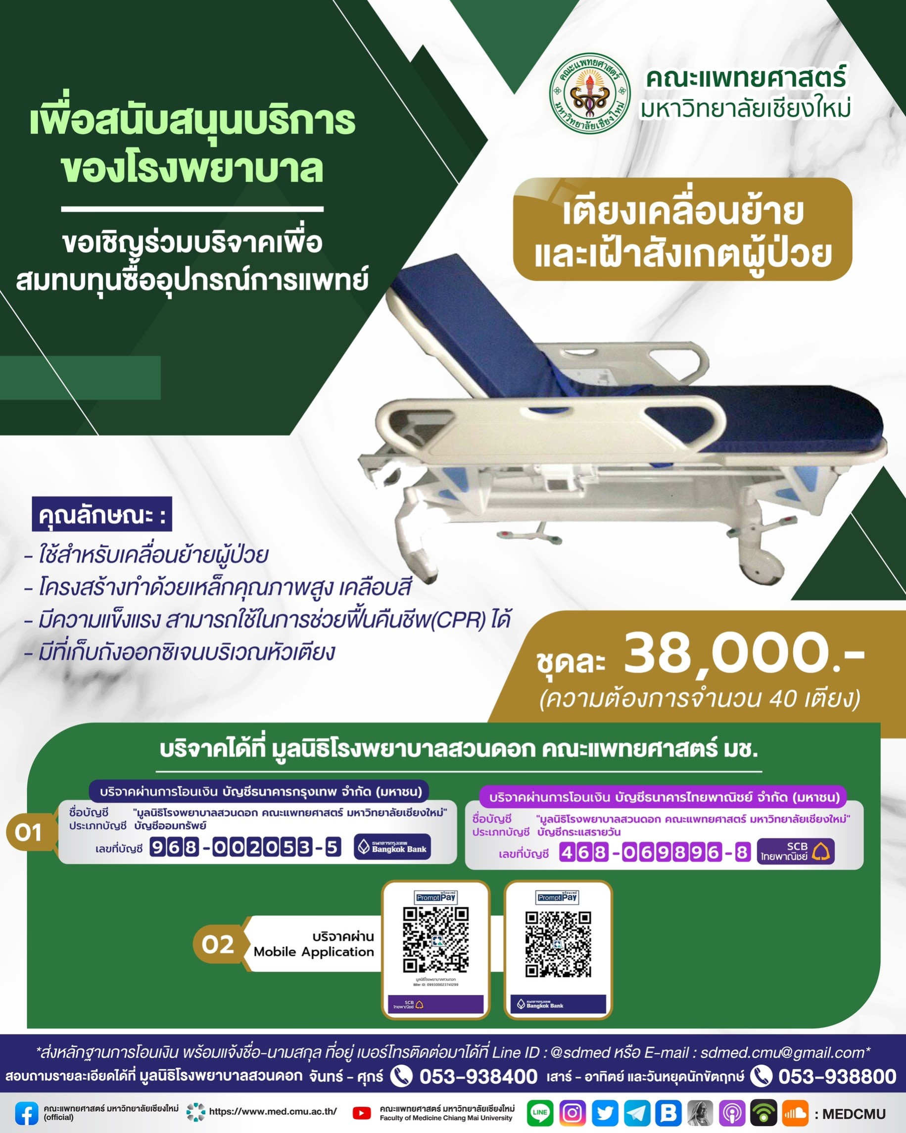 บริจาคได้ที่ มูลนิธิโรงพยาบาลสวนดอก คณะแพทยศาสตร์ มช.
