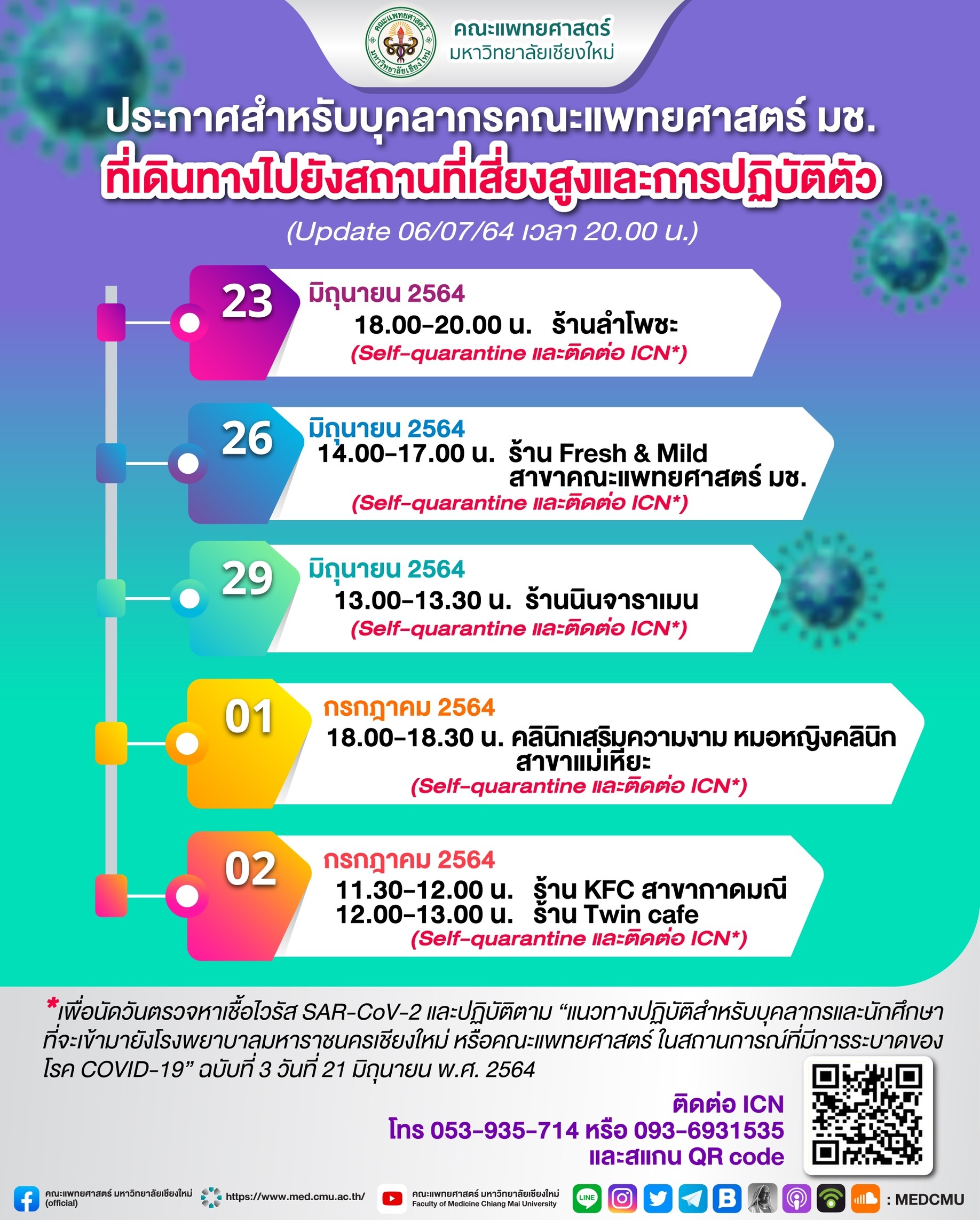ประกาศบุคลากรคณะแพทยศาสตร์ ที่เดินทางไปสถานที่เสี่ยงสูงและการปฏิบัติตัว