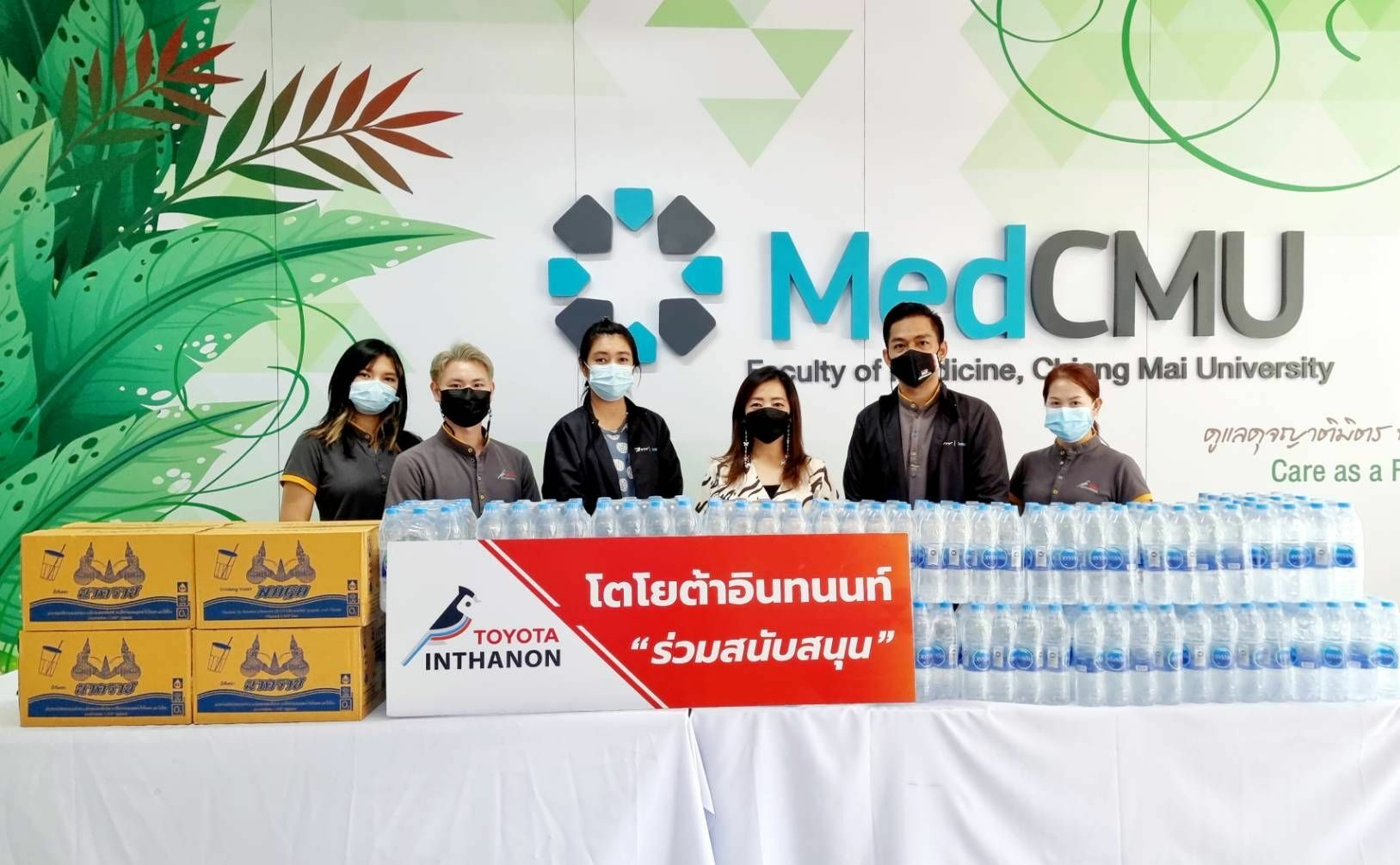 บริษัทโตโยต้าอินทนนท์ จำกัด บริจาคน้ำดื่มชนิดขวด จำนวน 23 แพ็ค ชนิดแก้ว จำนวน 5 ลัง ให้แก่ทีมแพทย์และบุคลากรที่ปฏิบัติหน้าที่ในสถานการณ์ COVID -19 ของโรงพยาบาลมหาราชนครเชียงใหม่ เมื่อวันที่ 12 กรกฎาคม 2564 ณ บริเวณโถงชั้น 1 อาคารบุญสม มาร์ติน คณะแพทยศาสตร์ มช.