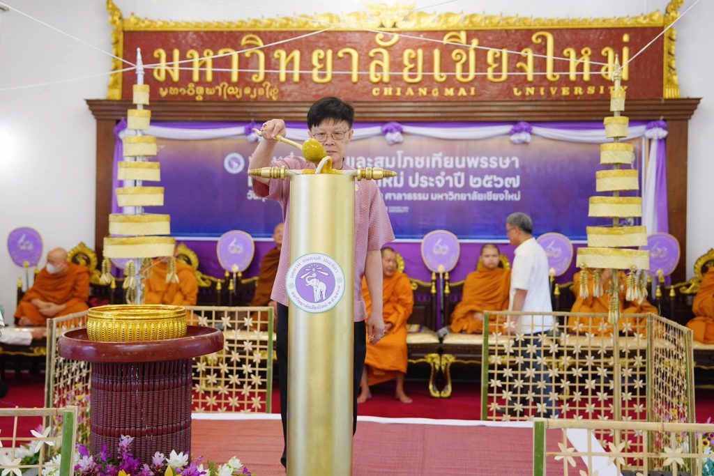 รศ.พญ.ยุพา สุมิตสวรรค์ ที่ปรึกษาผู้ทรงคุณวุฒิคณะแพทยศาสตร์ มช. พร้อมด้วย รศ.ดร.อุดม ชัยทอง ที่ปรึกษาผู้ทรงคุณวุฒิ คณะแพทยศาสตร์ มช., คุณอรวรรณ เร่งเร็ว หัวหน้างานบริหารทั่วไป , คุณนุชจรี อนุนิมิตรานนท์ หัวหน้างานประชาสัมพันธ์ พร้อมบุคลากรคณะแพทยศาสตร์ มช. ร่วมพิธีหล่อเทียนและสมโภชเทียนพรรษามหาวิทยาลัยเชียงใหม่ ประจำปี 2567 เพื่อสืบสานศิลปวัฒนธรรมประเพณีอันดีงาม และการทำนุบำรุงส่งเสริมพระพุทธศาสนา โดยมี ศาสตราจารย์ ดร.นายแพทย์พงษ์รักษ์ ศรีบัณฑิตมงคล อธิการบดีมหาวิทยาลัยเชียงใหม่ เป็นประธานในพิธี จัดโดยคณะกรรมการดำเนินงานด้านส่งเสริมศาสนา มหาวิทยาลัยเชียงใหม่ ในวันที่ 5 กรกฏาคม 2567 ณ ศาลาธรรม มหาวิทยาลัยเชียงใหม่