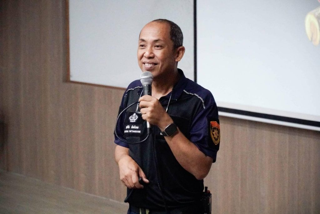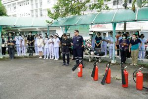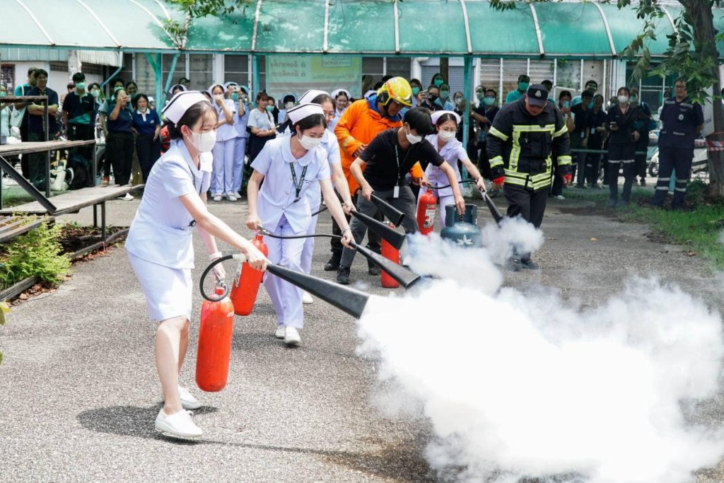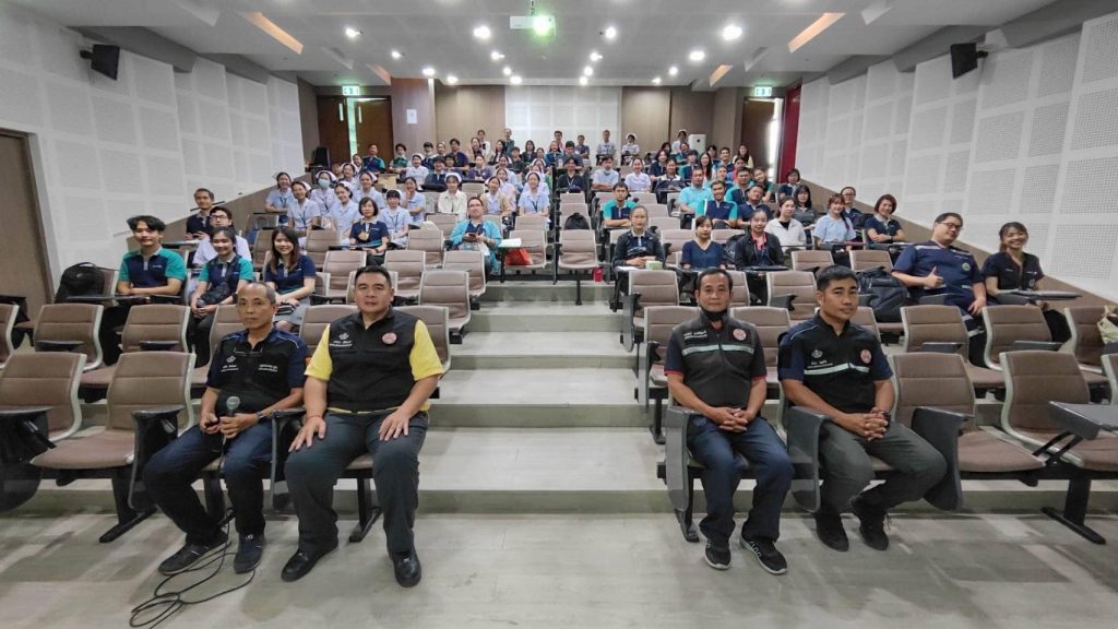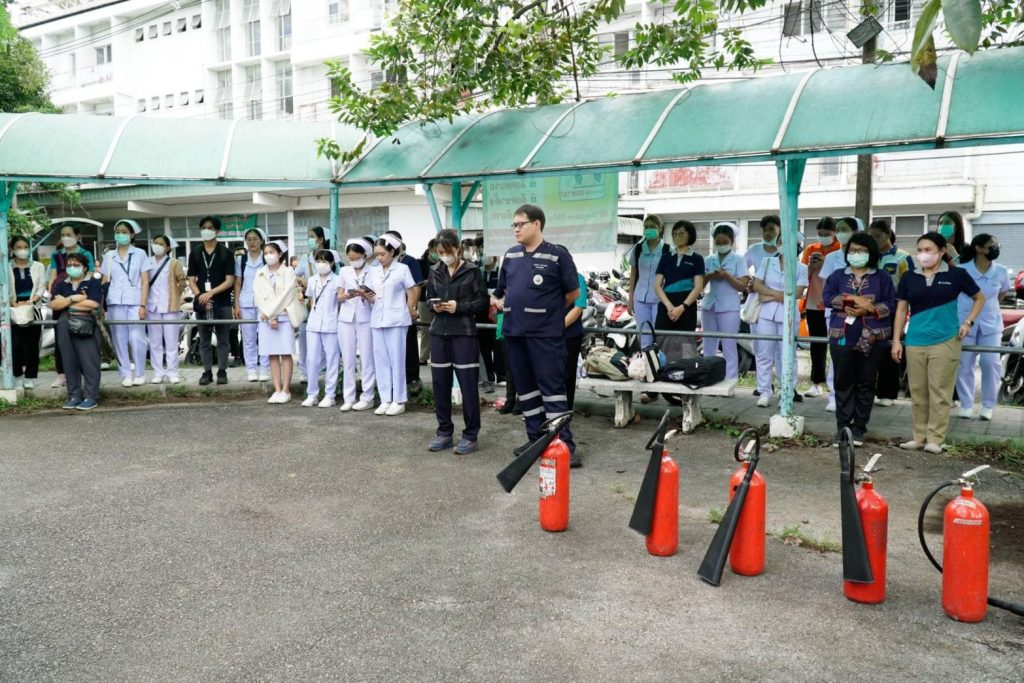 อ.นพ.สุทธิภาศ พงศ์มณี ผู้ช่วยคณบดีคณะแพทยศาสตร์ มช. เป็นประธานในพิธีเปิดการฝึกอบรมเชิงปฏิบัติการ การป้องกันและระงับอัคคีภัยขั้นต้น รอบที่ 2 ประจำปี 2567 เพื่อให้บุคลากรรู้วิธีป้องกัน และวิธีปฏิบัติตนเมื่อเกิดอัคคีภัย และมีความรู้เกี่ยวกับการใช้เครื่องดับเพลิงเบื้องต้น โดยจัดให้มีการบรรยายในหัวข้อเรื่อง ทฤษฎีการเกิดไฟไหม้, การแบ่งประเภทของไฟ, จิตวิทยาเมื่อเกิดอัคคีภัย, การป้องกันแหล่งกำเนิดของการติดไฟ, เครื่องมือดับเพลิงชนิดต่างๆ ,วิธีดับเพลิงประเภทต่างๆ ,แผนการป้องกันและระงับอัคคีภัย และหัวข้อพิเศษ การเอาตัวรอดจากภัยพิบัติ และภัยธรรมชาติ วิทยากรและครูฝึกนำโดย คุณธันวา บุญตัน หัวหน้าศูนย์ฝึกอบรมและเผยแพร่วิชาการงานป้องกัน และบรรเทาสาธารณภัยเทศบาลนครเชียงใหม่ ,คุณพลวัฒน์ ภูธนหิรัญพงศ์ หัวหน้าสถานีดับเพลิงหน่วยช้างเผือก ,คุณยรรยง พินิจวงษ์ หัวหน้างานป้องกันและบรรเทาสาธารณภัย เทศบาลนครเชียงใหม่ และคุณฤทธิชัย พัฒโนทัย งานป้องกันและบรรเทาสาธารณภัย เทศบาลนครเชียงใหม่ พร้อมภาคปฏิบัติ อบรมการใช้อุปกรณ์ดับเพลิงประเภทต่างๆ และการใช้อุปกรณ์คุ้มครองความปลอดภัยส่วนบุคคล ในวันที่ 9 สิงหาคม 2567 ณ ห้อง 0308 ชั้น 3 อาคารเรียนรวม คณะแพทยศาสตร์ มช. และ สนามบาสเกตบอล ข้างอาคารสันทนาการ คณะแพทยศาสตร์ มช.