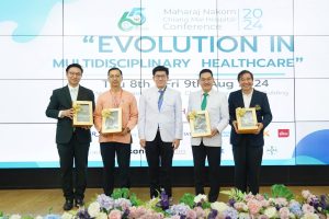 ศ.(เชี่ยวชาญพิเศษ)นพ.บรรณกิจ โลจนาภิวัฒน์ คณบดีคณะแพทยศาสตร์ มช. เป็นประธานกล่าวเปิดการประชุมวิชาการประจำปี Maharaj Nakorn Chiang Mai Hospital Evolution in Multidisciplinary Healthcare โดยมี รศ.นพ.นเรนทร์ โชติรสนิรมิต ผู้อำนวยการโรงพยาบาลมหาราชนครเชียงใหม่ กล่าวรายงาน ในการประชุมวิชาการประจำปี Maharaj Nakorn Chiang Mai Hospital Problem-based Conference 2024 : Evolution in Multidisciplinary Healthcare มีวัตถุประสงค์เพื่อเผยแพร่องค์ความรู้ ความก้าวหน้า และผลงานวิชาการให้แก่แพทย์ พยาบาล เภสัชกร และบุคลากรทางการแพทย์ ทุกสาขาวิชา จากโรงพยาบาลมหาราชนครเชียงใหม่ ศูนย์ศรีพัฒน์ ศูนย์ความเป็นเลิศทางการแพทย์ และโรงพยาบาลต่างๆ ทั่วประเทศ รวมทั้งเปิดโอกาสให้ผู้เข้าร่วมประชุมได้มีโอกาสแลกเปลี่ยนเรียนรู้ แสดงความคิดเห็นทางวิชาการทางการแพทย์และสาธารณสุข ซึ่งในปีนี้มีผู้เข้าร่วม 1,206 คน ผ่านระบบ Online 1,056 คน และOnsite จำนวน 150 คน วิทยากรโดย ศ.(เชี่ยวชาญพิเศษ)นพ.บรรณกิจ โลจนาภิวัฒน์ คณบดีคณะแพทยศาสตร์ มช., ผศ.ดร.ธานี แก้วธรรมมานุกูล คณบดีคณะพยาบาลศาสตร์ มช., ศ.ปฏิบัติ ดร.ภก.สุพัฒน์ จิรานุสรณ์กุล คณบดีคณะเภสัชศาสตร์ มช., ศ.ดร.สาคร พรประเสริฐ คณบดีคณะเทคนิคการแพทย์ มช. และวิทยากรจำนวน 31 ท่าน นอกจากนี้ภายในงานยังมีการจัดแสดงนิทรรศการผลิตภัณฑ์ต่างๆ อีกมากมาย ในวันที่ 8 สิงหาคม 2567 ณ ห้องประชุมชั้น 15 อาคารเฉลิมพระบารมี คณะแพทยศาสตร์ มช.