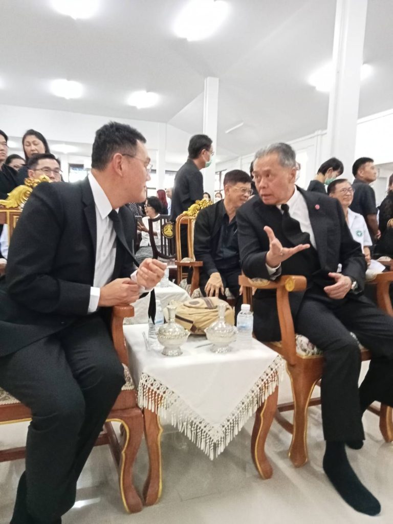 ศ.(เชี่ยวชาญพิเศษ)นพ.บรรณกิจ โลจนาภิวัฒน์ คณบดีคณะแพทยศาสตร์ มช. ร่วมพิธีรดน้ำศพ และบำเพ็ญกุศลศพ นพ.บุญยงค์ วงศ์รักมิตร อดีตผู้อํานวยการ รพ. น่าน ผู้ทําคุณประโยชน์คณะแพทย์ มช. และบิดา คุณบุญญนิตย์ วงศ์รักมิตร ผู้มีอุปการคุณคณะแพทยศาสตร์ มช. และ อดีตผู้ว่าการการไฟฟ้าฝ่ายผลิตแห่งประเทศไทย (กฝผ.) ในวันที่ 14 ตุลาคม 2567 ณ ศาลาวัดภูมินทร์ อำเภอเมืองน่าน จังหวัดน่าน