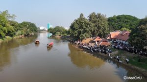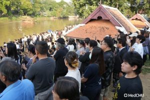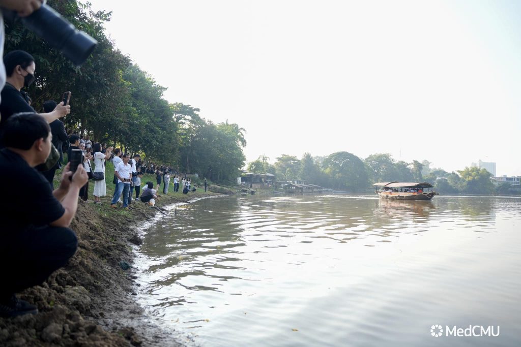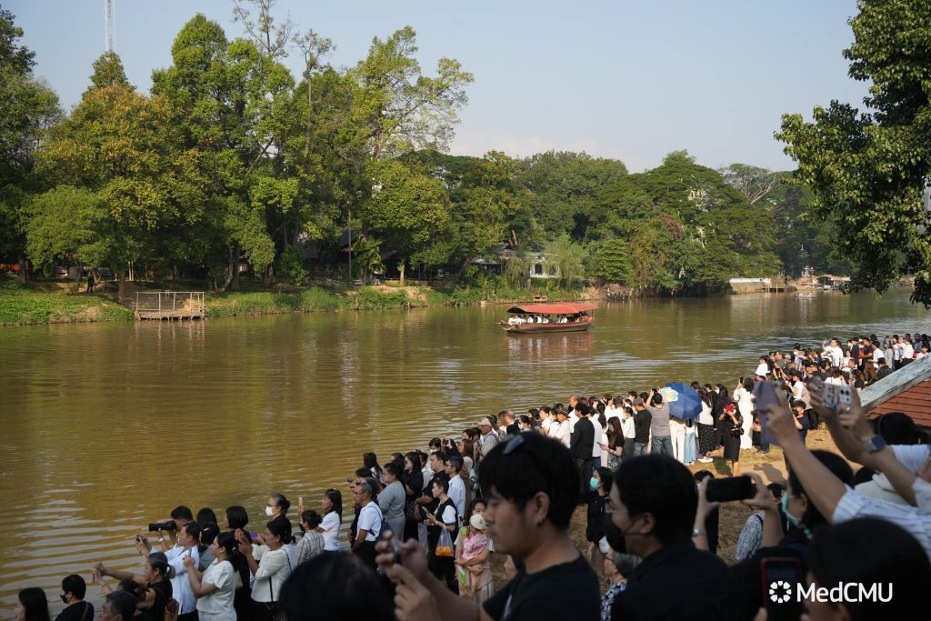 ศ.(เชี่ยวชาญพิเศษ)พญ.ผาสุก มหรรฆานุเคราะห์ ประธานการจัดงานพิธีพระราชทานเพลิงศพอาจารย์ใหญ่ ประจำปี 2567 และอดีตหัวหน้าภาควิชากายวิภาคศาสตร์ คณะแพทยศาสตร์ มช. เป็นประธานในพิธีทำบุญอัฐิ และลอยอังคาร (เถ้ากระดูก) อาจารย์ใหญ่ ภายหลังเสร็จสิ้นพิธีพระราชทานเพลิงศพอาจารย์ใหญ่ ประจำปีการศึกษา 2567 เมื่อวันที่ 7 ธันวาคม 2567 โดยมีคณาจารย์ นักศึกษาแพทย์ และญาติของอาจารย์ใหญ่ ร่วมอุทิศส่วนบุญส่วนกุศล แสดงความเคารพและรำลึกถึงครูผู้ไร้ลมหายใจ ผู้อุทิศร่างเป็นตำราให้เป็นวิทยาทานแก่การศึกษาเล่าเรียนของนักศึกษาคณะแพทยศาสตร์ และคณะต่างๆ ด้านวิทยาศาสตร์สุขภาพของมหาวิทยาลัยเชียงใหม่ จำนวน 675 ร่าง จัดโดยภาควิชากายวิภาคศาสตร์ คณะแพทยศาสตร์ มหาวิทยาลัยเชียงใหม่ ในวันที่ 8 ธันวาคม 2567 ณ ท่าน้ำปิง บริเวณอนุสาวรีย์พระเจ้ากาวิละ อำเภอแม่ริม จังหวัดเชียงใหม่