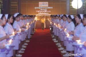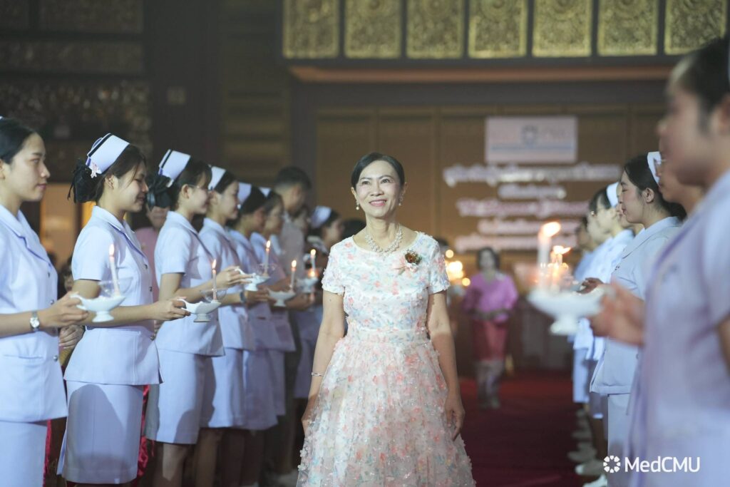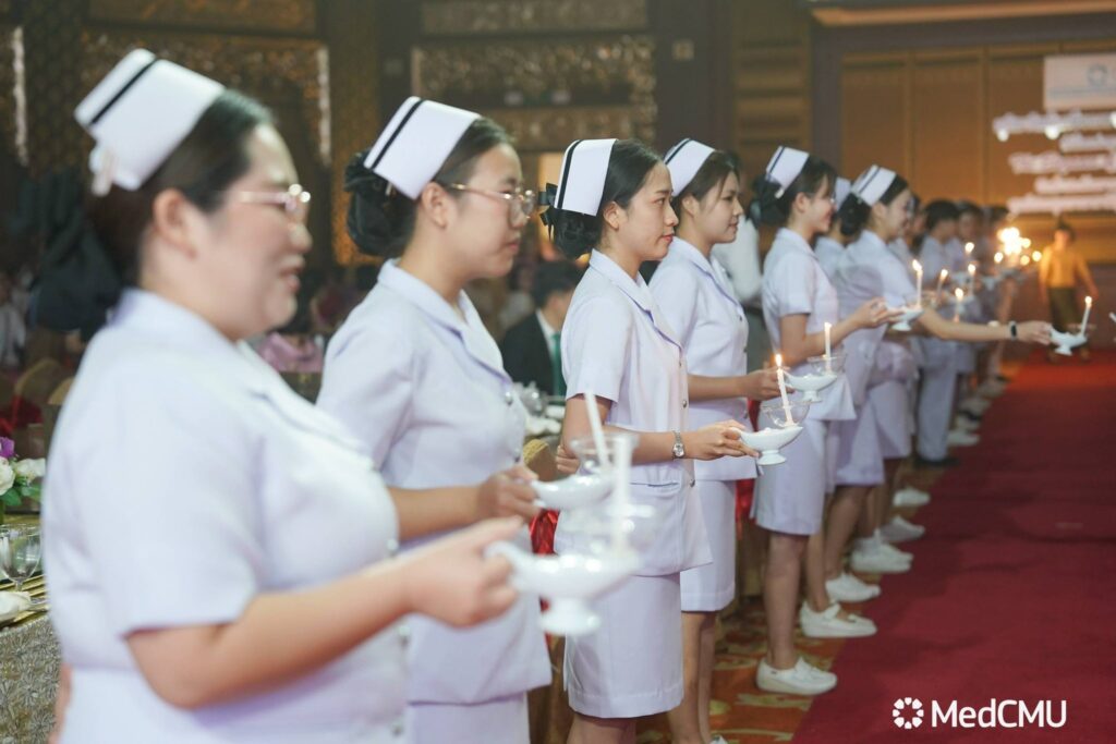 โดยมี รศ.นพ.นเรนทร์ โชติรสนิรมิต คณบดีคณะแพทยศาสตร์ มช., รศ.พญ.อรินทยา พรหมินธิกุล ผู้อำนวยการโรงพยาบาลมหาราชนครเชียงใหม่, ผศ.ดร.สุภารัตน์ วังศรีคูณ คณบดีคณะพยาบาลศาสตร์ มช. ร่วมแสดงมุทิตาจิต และมี คุณวีรชาติ ชูฤทธิ์ หัวหน้าฝ่ายการพยาบาล ปฏิบัติหน้าที่รองผู้อำนวยการโรงพยาบาลมหาราชนครเชียงใหม่ ประธานจัดงานกล่าวรายงาน พร้อมด้วยคณะผู้บริหารฝ่ายการพยาบาล ท่านที่เกษียณอายุงานไปแล้ว คณาจารย์คณะพยาบาลศาสตร์ มช. และบุคลากร ฝ่ายการพยาบาล ร่วมในพิธี ในวันที่ 13 กันยายน 2568 ณ KHUM KHAM International Convention Centre Chiang Mai