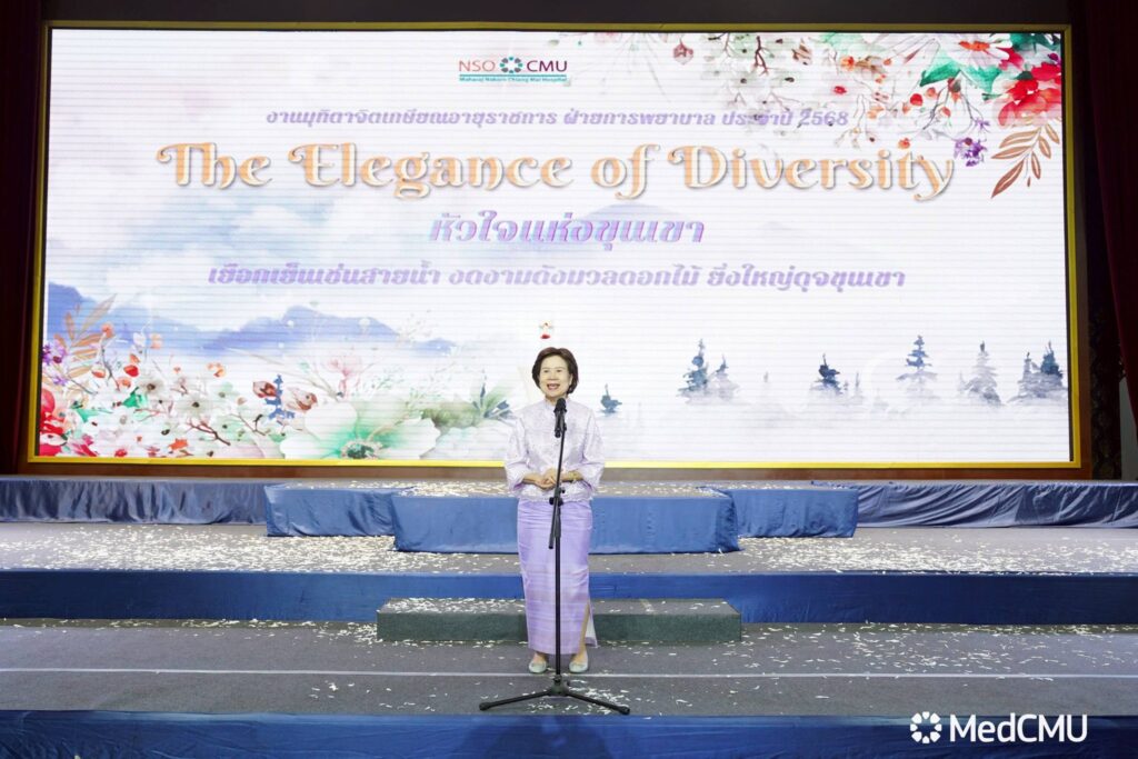 รศ.นพ.ณัฐพงศ์ โฆษชุณหนันท์ รองคณบดีด้านบริหารทั่วไป คณะแพทยศาสตร์ มหาวิทยาลัยเชียงใหม่ เป็นประธานเปิด งานแสดงมุทิตาจิตผู้เกษียณอายุงาน ฝ่ายการพยาบาล โรงพยาบาลมหาราชนครเชียงใหม่ ประจำปี 2568 ในธีมงาน “THE ELEGANCE OF DIVERSITY เยือกเย็นเช่นสายน้ำ งดงามดั่งมวลดอกไม้ ยิ่งใหญ่ดุจขุนเขา”