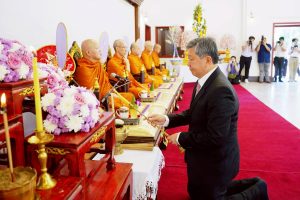 โดยมี ศ.คลินิก นพ.นิเวศน์ นันทจิต อดีตอธิการบดีมหาวิทยาลัยเชียงใหม่ เป็นประธานในพิธี คุณสุมิตร เพชราภิรัชต์ นายกสมาคมนักศึกษาเก่ามหาวิทยาลัยเชียงใหม่ คณะผู้บริหาร คณาจารย์ เจ้าหน้าที่ พร้อมด้วยคณะกรรมการสมาคม และนักศึกษาเก่า ร่วมพิธีฯ