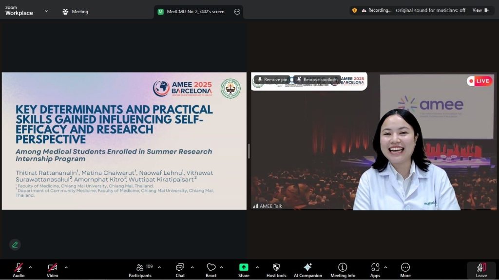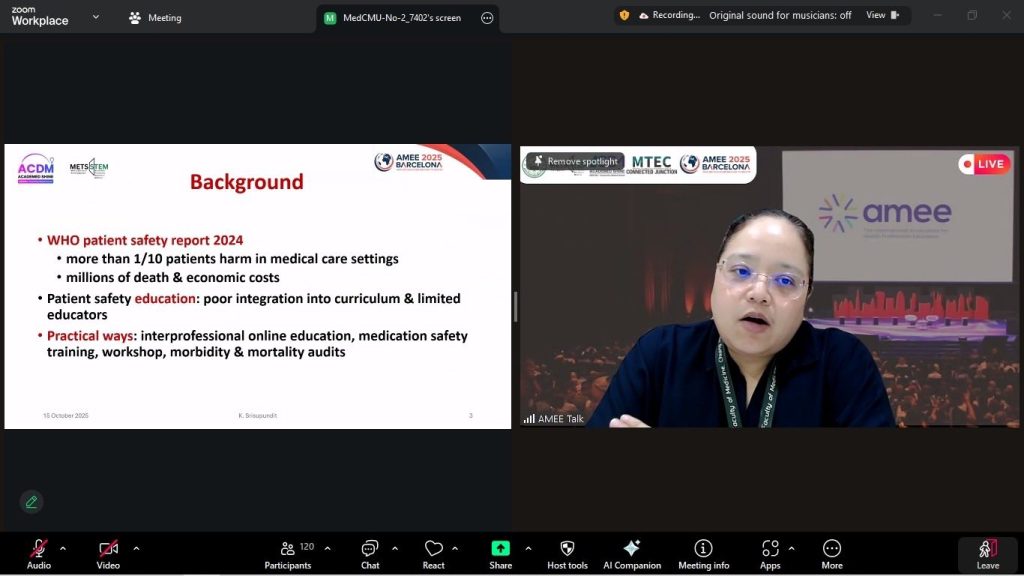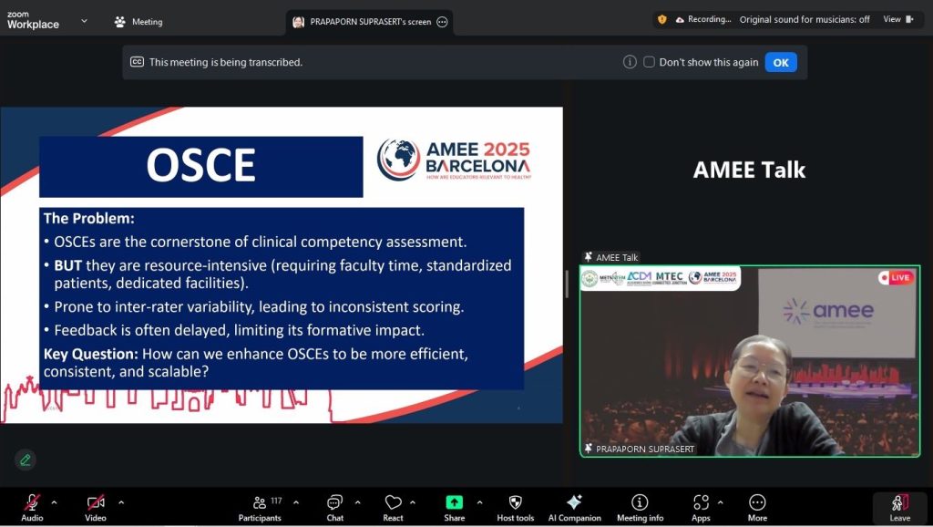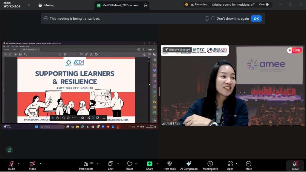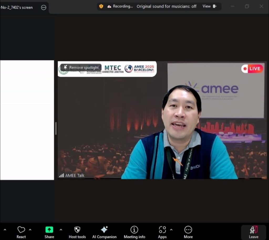 โดยมีผู้บริหารด้านวิชาการ นำโดย รศ.นพ.เอกรัฐ รัฐฤทธิ์ธำรง รองคณบดีด้านการศึกษาก่อนปริญญา, รศ.พญ.เกษมศรี ศรีสุพรรณดิฐ ผู้ช่วยคณบดี, รศ.ดร.นพ.เกริกวิชช์ ศิลปวิทยาทร ผู้ช่วยคณบดี, ผศ.พญ.จีระนันท์ คุณาชีวะ ผู้ช่วยคณบดี, รศ.พญ.ประภาพร สู่ประเสริฐ อาจารย์ประจำภาควิชาสูติศาสตร์และนรีเวชวิทยา, ผศ.นพ.วิทวัส สุรวัฒนสกุล อาจารย์ประจำภาควิชาเวชศาสตร์ชุมชน, นศพ.ปรีณาพรรณ เสาร์เขียว นักศึกษาแพทย์ชั้นปีที่ 5 และ นศพ.ฐิติรัตน์ รัตนนลิน นักศึกษาแพทย์ชั้นปีที่ 4 ร่วมถ่ายทอดความรู้และประสบการณ์จากการเข้าร่วมประชุมและนำเสนอผลงานวิชาการด้านแพทยศาสตรศึกษาในเวทีนานาชาติ AMEE 2025
