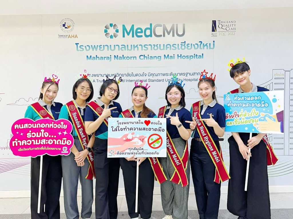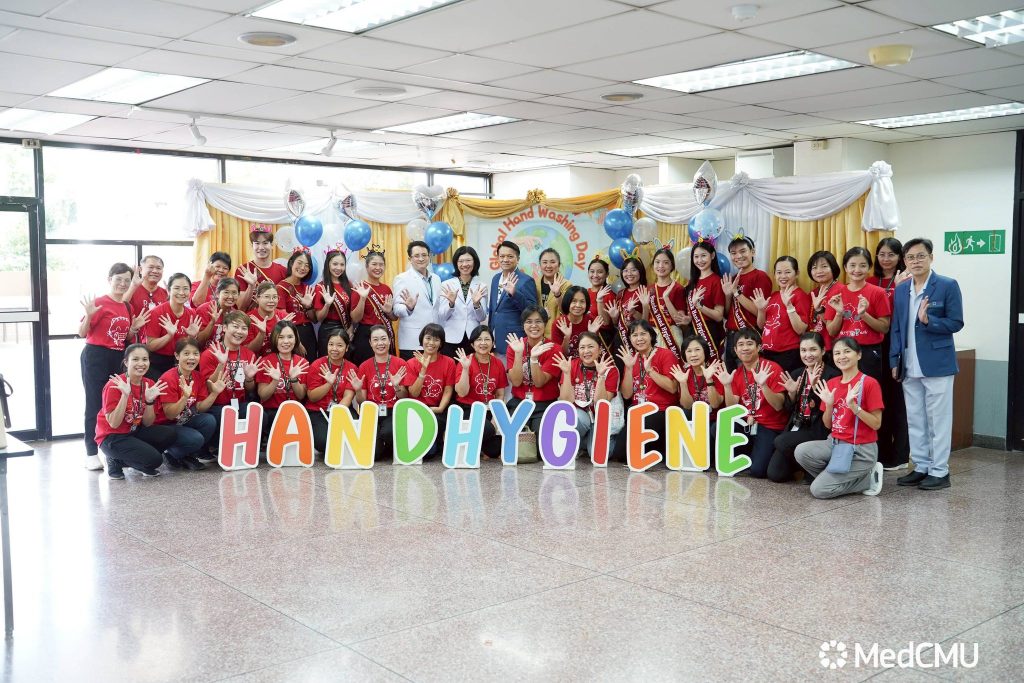 รศ.พญ.อรินทยา พรหมินธิกุล ผู้อำนวยการโรงพยาบาลมหาราชนครเชียงใหม่ คณะแพทยศาสตร์ มช. เป็นประธานเปิดโครงการ SUANDOK HAND HYGIENE WORLD HAND HYGIENE DAY 2025 เนื่องในวันล้างมือโลก โดยมี รศ.นพ.ขจรศักดิ์ นพคุณ รองผู้อำนวยการโรงพยาบาลมหาราชนครเชียงใหม่ และประธานคณะกรรมการป้องกันและควบคุมการติดเชื้อในโรงพยาบาล กล่าวรายงาน