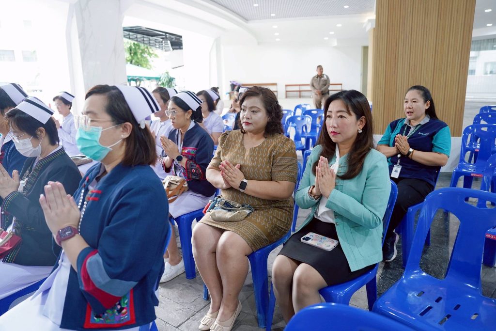 โดยมี รศ.พญ.อรินทยา พรหมินธิกุล ผู้อำนวยการโรงพยาบาลมหาราชนครเชียงใหม่ พร้อมด้วย ศ.(เชี่ยวชาญพิเศษ) นพ.บรรณกิจ โลจนาภิวัฒน์ ที่ปรึกษาผู้ทรงคุณวุฒิ, รศ.พญ.ยุพา สุมิตสวรรค์ ที่ปรึกษาผู้ทรงคุณวุฒิ, ศ.(เชี่ยวชาญพิเศษ) ดร.นิวัตน์ มณีกาญจน์ อาจารย์อาวุโสประจำภาควิชาจุลชีววิทยา, คณะผู้บริหาร แพทย์ พยาบาล ข้าราชการ บุคลากรคณะแพทยศาสตร์ มช. และประชาชนทั่วไป เข้าร่วมพิธีทำบุญเพื่อความเป็นสิริมงคล และอุทิศส่วนกุศลแด่ผู้เสียชีวิตในโรงพยาบาลมหาราชนครเชียงใหม่ จำนวน 1,167 ราย (ตั้งแต่วันที่ 28 ตุลาคม 2567 ถึง วันที่ 14 ตุลาคม 2568)
