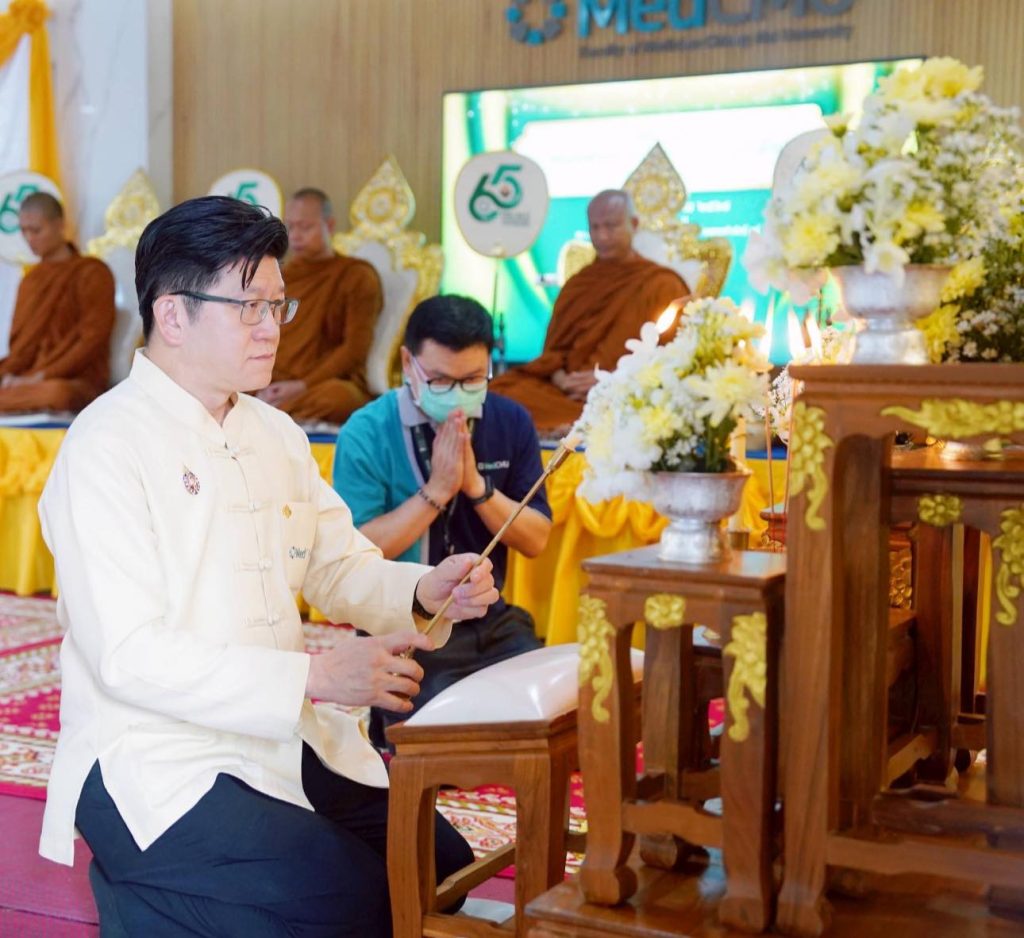 รศ.นพ.นเรนทร์ โชติรสนิรมิต คณบดีคณะแพทยศาสตร์ มช. เป็นประธานฝ่ายฆราวาส จุดธูปเทียนบูชาพระรัตนตรัย ในพิธีทำบุญคณะแพทยศาสตร์ มหาวิทยาลัยเชียงใหม่ ประจำปี พ.ศ.2568 โดยมี พระราชวชิรคุณ (หลวงพ่อทองแดง วรปัญโญ) ที่ปรึกษาเจ้าคณะจังหวัดเชียงใหม่-ลำพูน-แม่ฮ่องสอน (ธ) เจ้าอาวาสวัดดอยพระเจ้าตนหลวง เป็นประธานสงฆ์