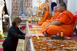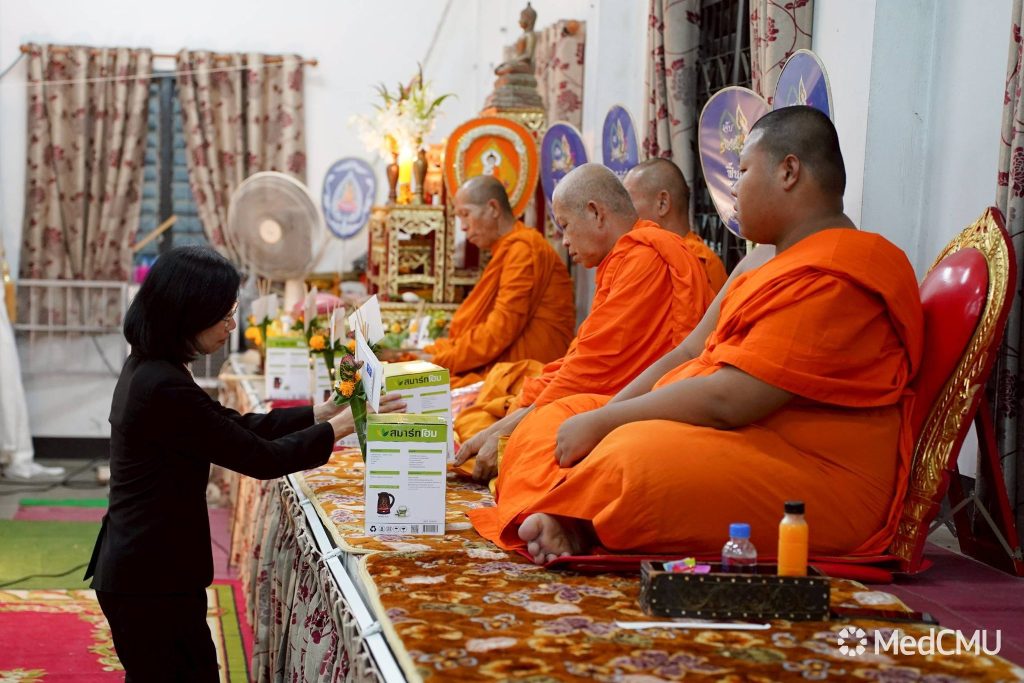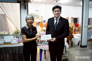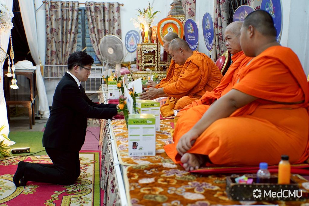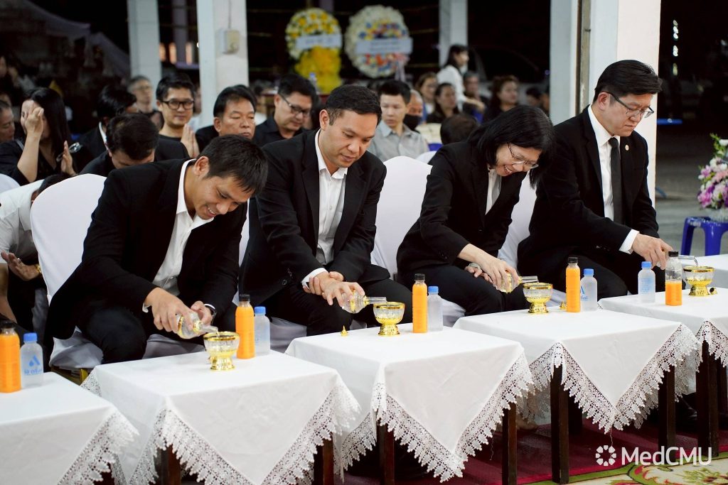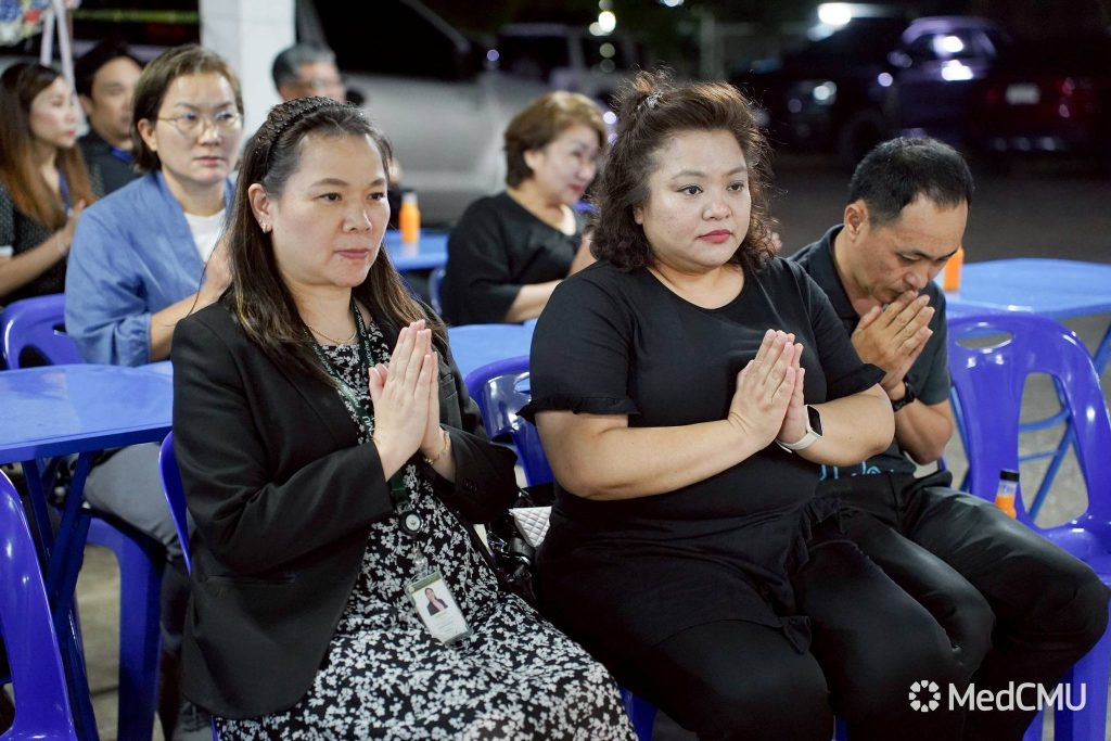 รศ.นพ.นเรนทร์ โชติรสนิรมิต คณบดีคณะแพทยศาสตร์ มช. พร้อมด้วย รศ.พญ.อรินทยา พรหมินธิกุล ผู้อำนวยการโรงพยาบาลมหาราชนครเชียงใหม่, ผศ.นพ.ธวัชชัย มั่นอ่ำ รองคณบดีด้านกายภาพและสิ่งแวดล้อม, รศ.ดร.นพ.อภิชาติ ตันตระวรศิลป์ รองคณบดีด้านการศึกษาหลังปริญญา, คุณมะลิวรรณ หินทอง เลขานุการคณะแพทยศาสตร์ มช., คณาจารย์ และบุคลากร คณะแพทยศาสตร์ มช.
