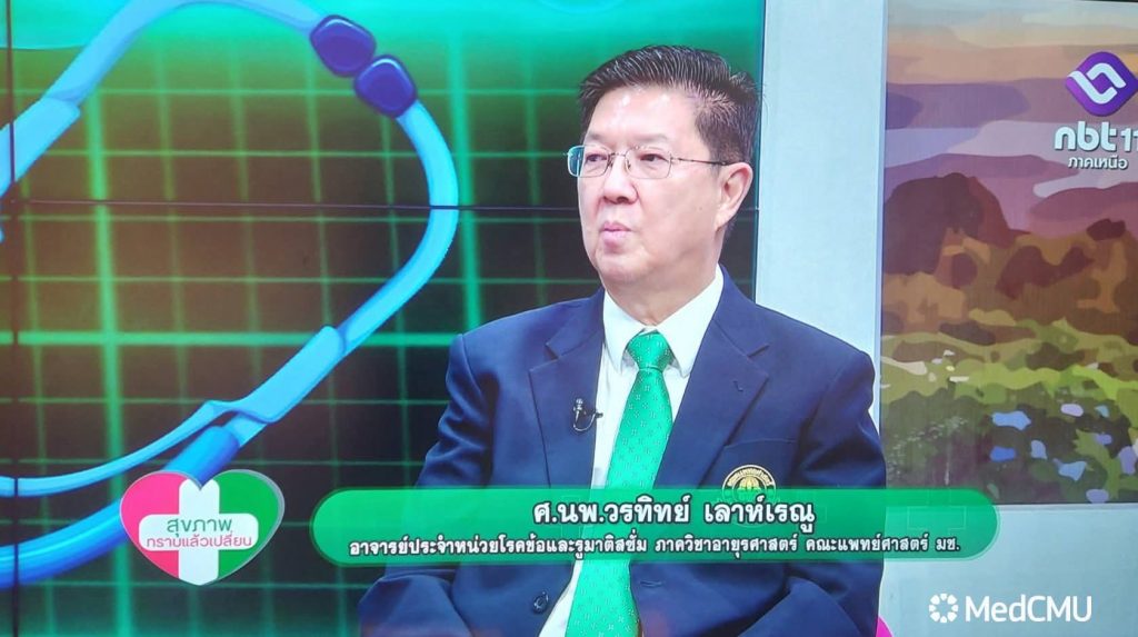 ศ.นพ.วรวิทย์ เลาห์เรณู อาจารย์ประจำหน่วยโรคข้อและรูมาติสซั่ม ภาควิชาอายุรศาสตร์ คณะแพทยศาสตร์ มหาวิทยาลัยเชียงใหม่ ให้สัมภาษณ์ในการบันทึกเทปโทรทัศน์ รายการสุขภาพทราบแล้วเปลี่ยน ตอน “โรคเก๊าท์ โรคข้ออักเสบ ที่ไม่ควรมองข้าม” ออกอากาศวันศุกร์ที่ 24 ตุลาคม 2568 เวลา 15.00-15.30 น. ดำเนินรายการโดย คุณพนารัตน์ ม่วงปัด