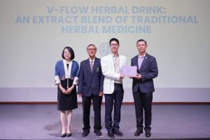ผลงาน “สารสกัดจากสมุนไพร 3 ชนิด จากพุทธาจีน ขิง และเห็ดหูหนูดำ สำหรับรักษาภาวะหลอดเลือดตีบ”