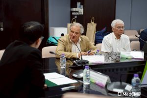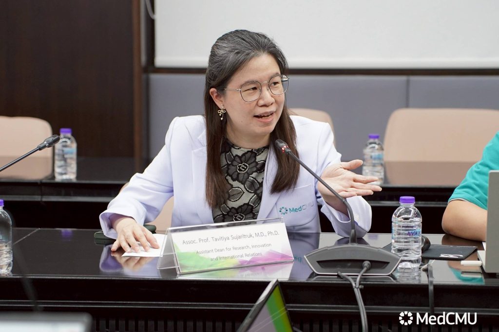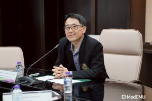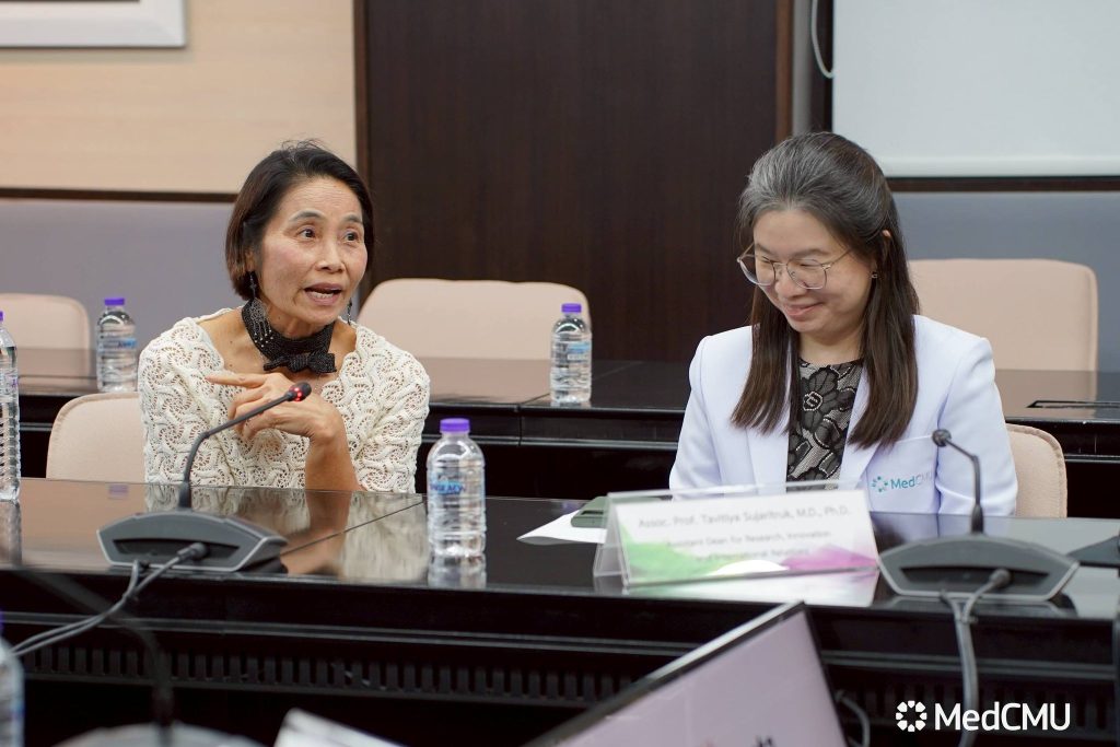 ศ.ดร.นพ.ดำเนินสันต์ พฤกษากร รองคณบดีด้านวิจัย นวัตกรรม และวิเทศสัมพันธ์ คณะแพทยศาสตร์ มช. พร้อมด้วย รศ.ดร.พญ.ทวิติยา สุจริตรักษ์ ผู้ช่วยคณบดีด้านวิจัย นวัตกรรม และวิเทศสัมพันธ์