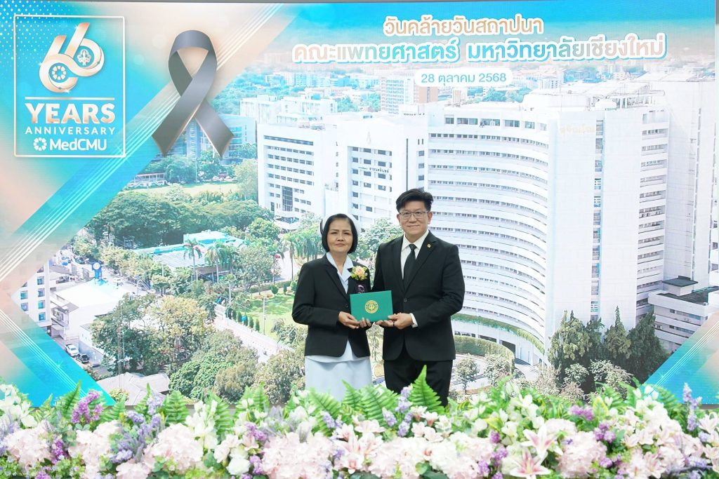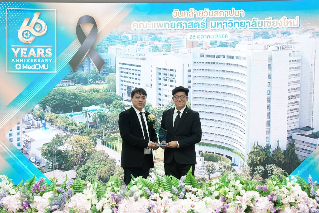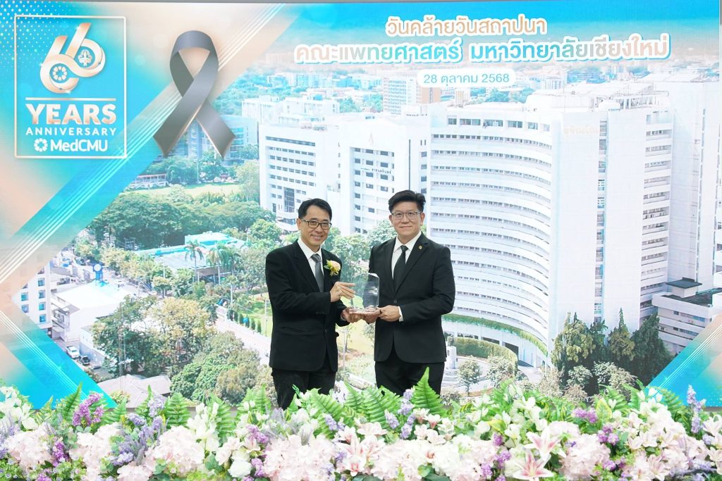 รศ.นพ.นเรนทร์ โชติรสนิรมิต คณบดีคณะแพทยศาสตร์ มหาวิทยาลัยเชียงใหม่ มอบโล่รางวัลเชิดชูเกียรติบุคลากรดีเด่น เนื่องในวันคล้ายวันสถาปนา คณะแพทยศาสตร์ มหาวิทยาลัยเชียงใหม่ ครบรอบ 66 ปี