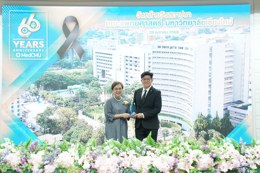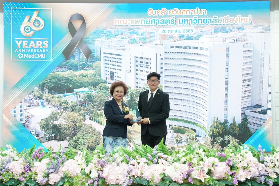 รศ.นพ.นเรนทร์ โชติรสนิรมิต คณบดีคณะแพทยศาสตร์ มช. มอบโล่เกียรติยศ โล่ผู้มีอุปการคุณสูงสุด ของคณะแพทยศาสตร์ ประจำปี 2568 ได้แก่