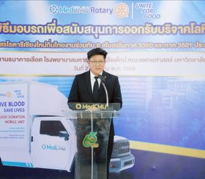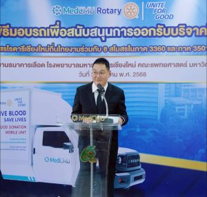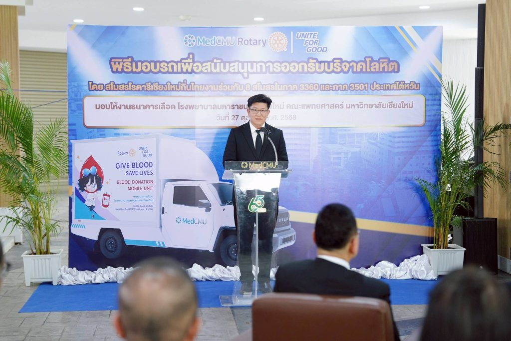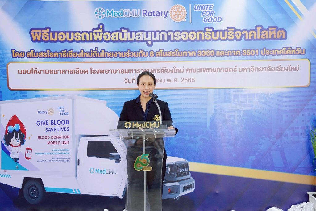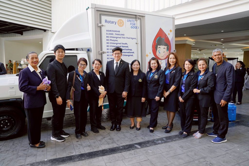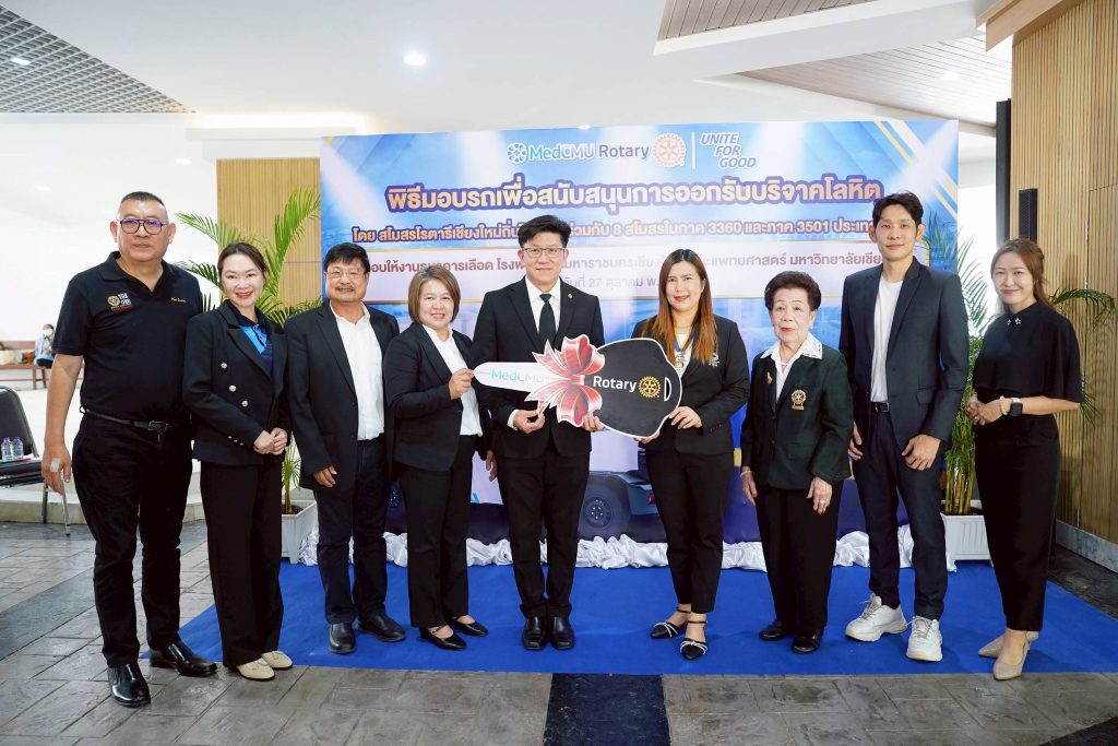 คณะแพทยศาสตร์ มช. รับมอบรถขนส่งโลหิตและอุปกรณ์ออกหน่วยรับบริจาคโลหิตจากสโมสรโรตารี มูลค่า 2,163,200 บาท เพื่อใช้ในการออกหน่วยรับบริจาคโลหิตของงานธนาคารลือด โรงพยาบาลมหาราชนครเชียงใหม่