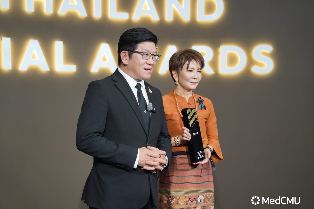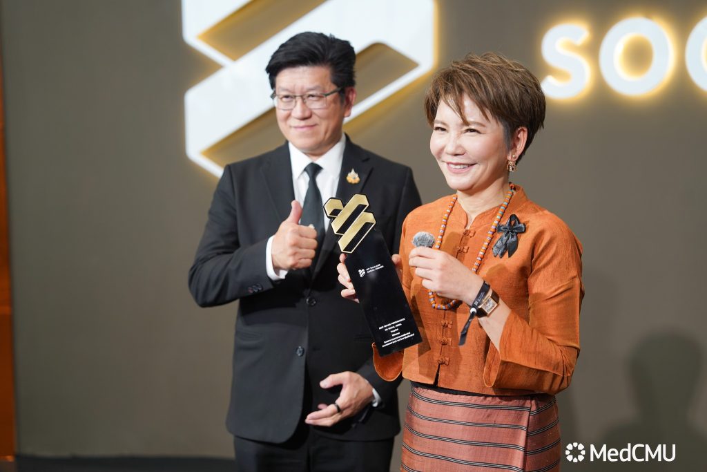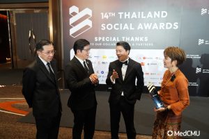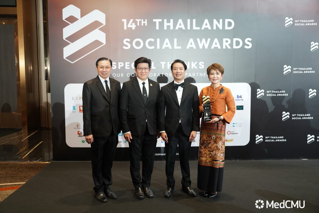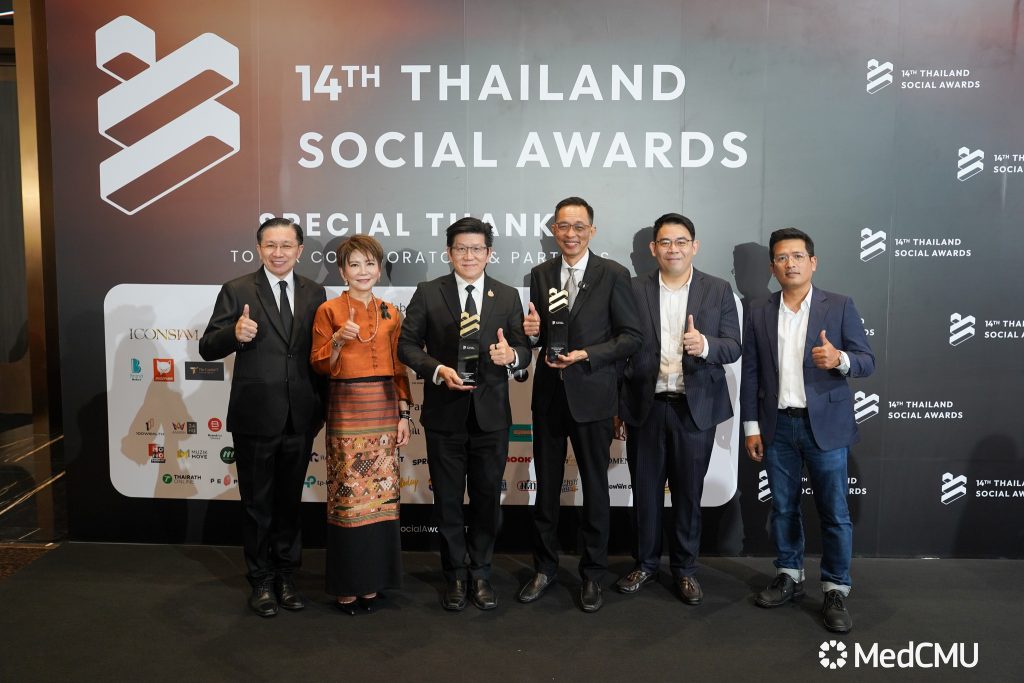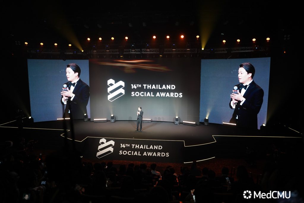 รศ.นพ.นเรนทร์ โชติรสนิรมิต คณบดีคณะแพทยศาสตร์ มช. พร้อมด้วย ผศ.พญ.พุดตาน วงศ์ตรีรัตนชัย รองคณบดีด้านสื่อสารองค์กร ร่วมในงานมอบรางวัล สุดยอดแบรนด์ที่มีผลงานยอดเยี่ยมบนโซเชียลมีเดีย THAILAND SOCIAL AWARDS ครั้งที่ 14 ซึ่งเป็นงานประกาศรางวัลโซเชียลที่ยิ่งใหญ่ที่สุดของประเทศไทย จัดโดย บริษัท ไวซ์ไซท์ (ประเทศไทย) จำกัด ผู้ผลิตและพัฒนาซอฟต์แวร์ ด้านการวิเคราะห์ข้อมูลตลาด เพื่อให้ความสำคัญกับวงการโซเชียลที่เป็นส่วนหนึ่งในการขับเคลื่อนเศรษฐกิจภาพรวมของประเทศ
