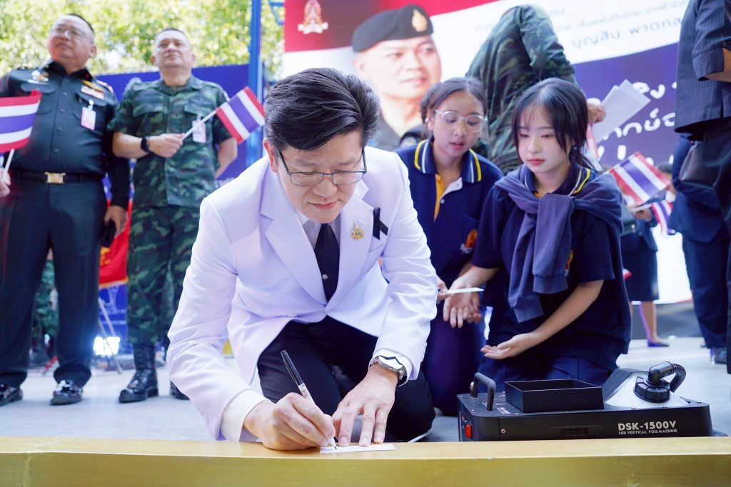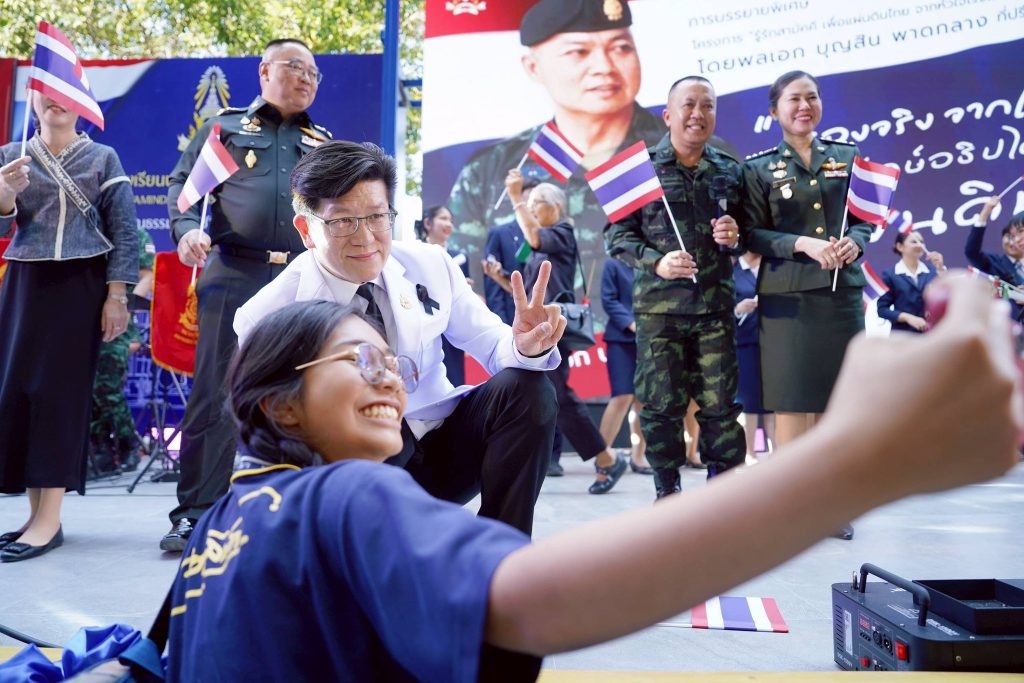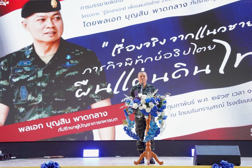 โดยได้รับเกียรติจาก พลเอก บุญสิน พาดกลาง ที่ปรึกษาผู้บัญชาการทหารบก เป็นวิทยากรบรรยายในหัวข้อ “เรื่องจริงจากแนวชายแดน ภารกิจพิทักษ์อธิปไตยผืนแผ่นดินไทย” มีวัตถุประสงค์ เพื่อสร้างความภาคภูมิใจในความเป็นชาติไทย ส่งเสริมให้รู้จักรัก และหวงแหนความเป็นไทย ให้เกิดแก่ นักเรียน ผู้ปกครอง ฝ่ายบริหาร หัวหน้าส่วนราชการ คณะครู และบุคลากรทางการศึกษา จำนวน 3,200 คน
