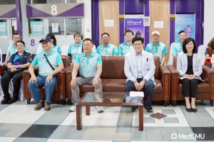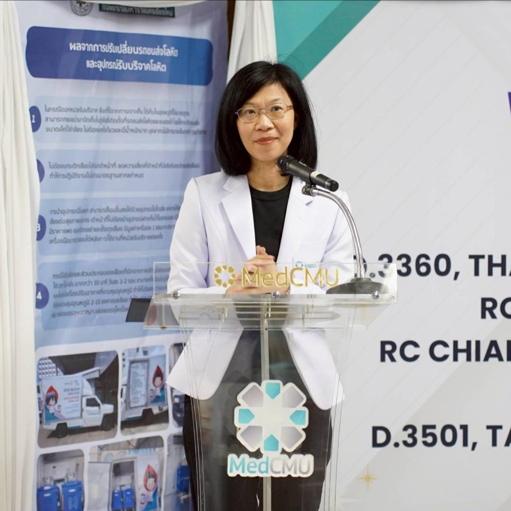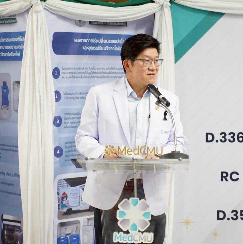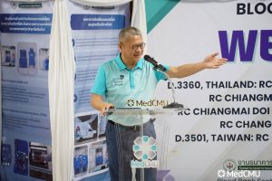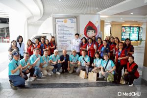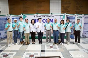 รศ.นพ.นเรนทร์ โชติรสนิรมิต คณบดีคณะแพทยศาสตร์ มช. พร้อมด้วย ศ.พญ.อรินทยา พรหมินธิกุล ผู้อำนวยการโรงพยาบาลมหาราชนครเชียงใหม่ และทนพญ.ไพรจิตร ตานัน หัวหน้างานธนาคารเลือด