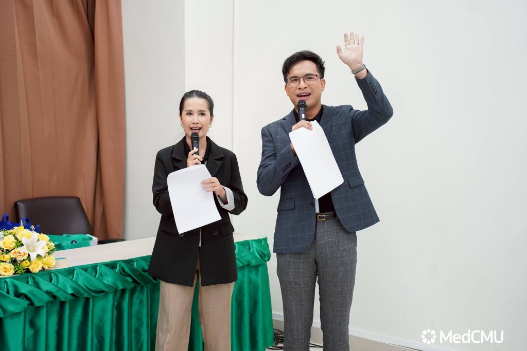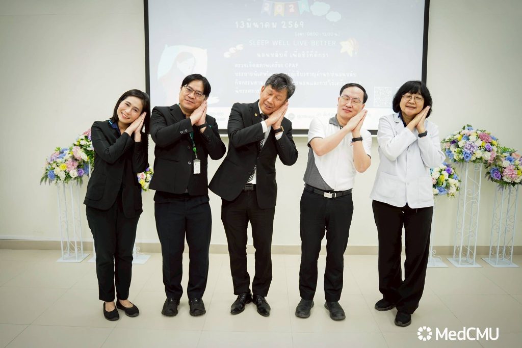 รศ.นพ.ณัฐพงศ์ โฆษชุณหนันท์ รองคณบดีด้านบริหารทั่วไป คณะแพทยศาสตร์ มช. เป็นประธานเปิด กิจกรรมเสวนาให้ความรู้ วันนอนหลับโลก (World sleep day) “Sleep Well Live Better” นอนหลับที่ดี เพื่อชีวีที่ดีกว่า โดยมี ผศ.นพ.ธนัฐ วานิยะพงศ์ ผู้อำนวยการศูนย์ความเป็นเลิศทางการแพทย์ กล่าวต้อนรับ และ รศ.นพ.ธีรกร ธีรกิตติกุล อาจารย์หน่วยวิชาโรคระบบการหายใจ เวชบำบัดวิกฤตและภูมิแพ้ ภาควิชาอายุรศาสตร์ คณะแพทยศาสตร์ มช. กล่าวรายงาน