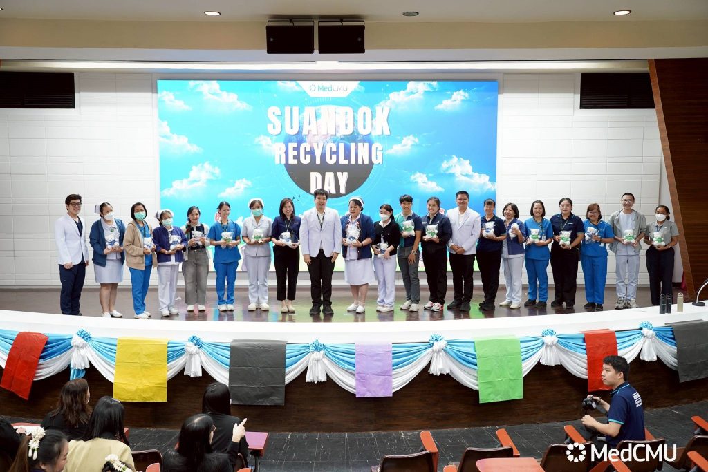 รศ.นพ.นเรนทร์ โชติรสนิรมิต คณบดีคณะแพทยศาสตร์ มช. เป็นประธานเปิดกิจกรรม “Suandok Recycling Day” โดยมี ศ.พญ.อรินทยา พรหมินธิกุล ผู้อำนวยการโรงพยาบาลมหาราชนครเชียงใหม่ กล่าวรายงาน