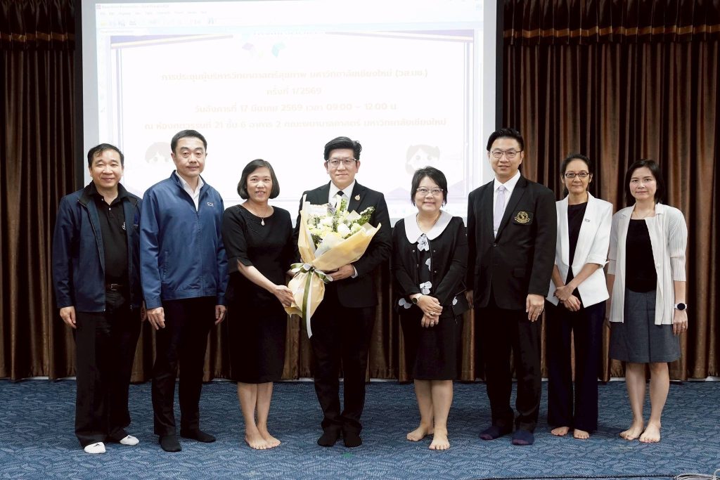 รศ.นพ.นเรนทร์ โชติรสนิรมิต คณบดีคณะแพทยศาสตร์ มช. พร้อมด้วย รศ.นพ.เอกรัฐ รัฐฤทธิ์ธำรง รองคณบดีด้านการศึกษาก่อนปริญญา, ศ.ดร.นพ.ดำเนินสันต์ พฤกษากร รองคณบดีด้านวิจัย นวัตกรรม และวิเทศสัมพันธ์, ผศ.นพ.ธวัชชัย มั่นอ่ำ รองคณบดีด้านกายภาพและสิ่งแวดล้อม, ผศ.นพ.สุรัตน์ ตันประเวช ผู้ช่วยคณบดีด้านวิจัย นวัตกรรม และวิเทศสัมพันธ์ และหัวหน้าศูนย์นวัตกรรมสุขภาพ (MEDCHIC) คณะแพทยศาสตร์ มช. คุณมะลิวรรณ หินทอง เลขานุการคณะแพทยศาสตร์ มช., และคุณอรวรรณ เร่งเร็ว หัวหน้างานบริหารทั่วไป ร่วมการประชุมผู้บริหารคณะและสถาบันสาขาวิทยาศาสตร์สุขภาพ มช. (วส.มช.) ครั้งที่ 1/2569 เพื่อปรึกษาหารือด้านความร่วมมือในกิจกรรมต่าง ๆ ระหว่าง 7 คณะวิทยาศาสตร์สุขภาพ และสถาบันวิทยาศาสตร์สุขภาพ