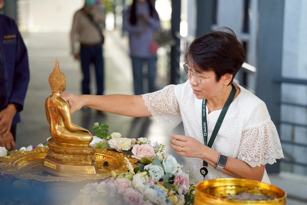 โดยมี รศ.นพ.ณัฐพงศ์ โฆษชุณหนันท์ รองคณบดีด้านบริหารทั่วไป คณะแพทยศาสตร์ มช., คุณมะลิวรรณ หินทอง เลขานุการคณะแพทยศาสตร์ มช., หัวหน้างาน และคณะกรรมการส่งเสริมศิลปวัฒนธรรมของคณะแพทยศาสตร์ มช. ร่วมงาน
