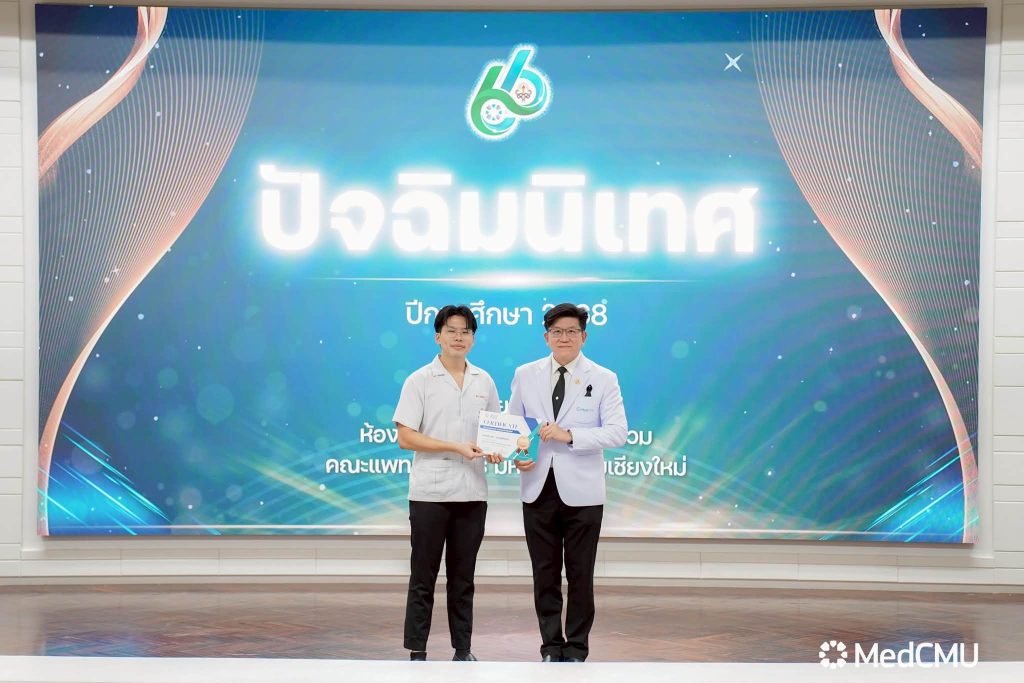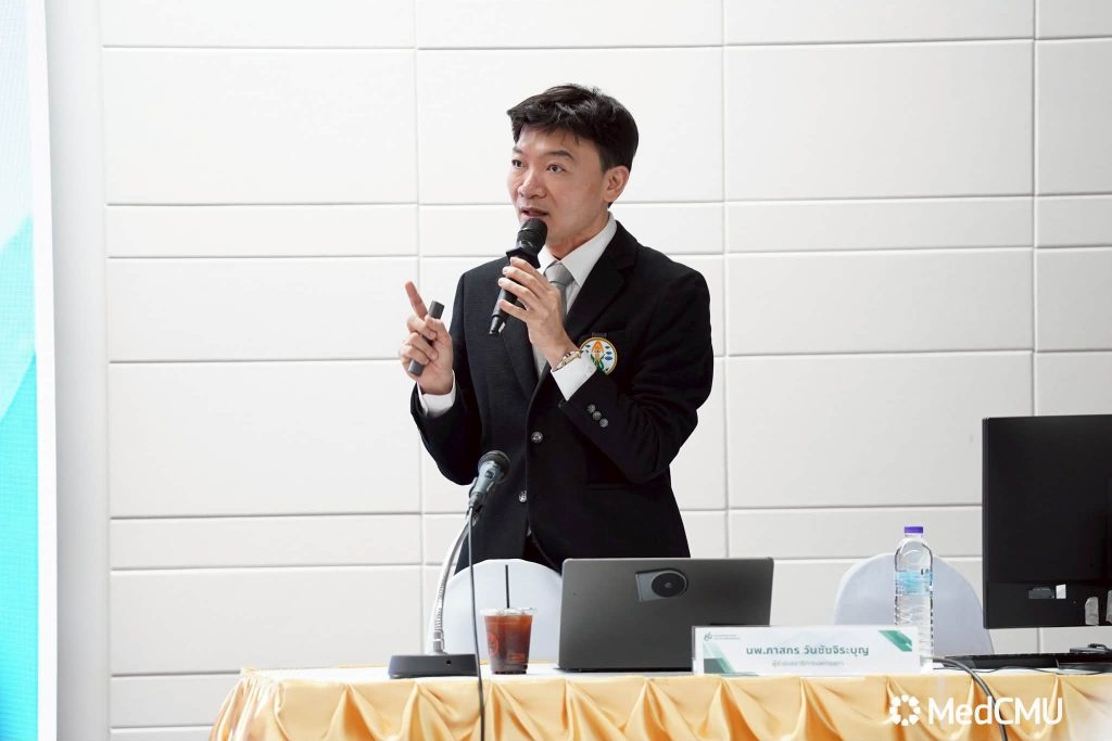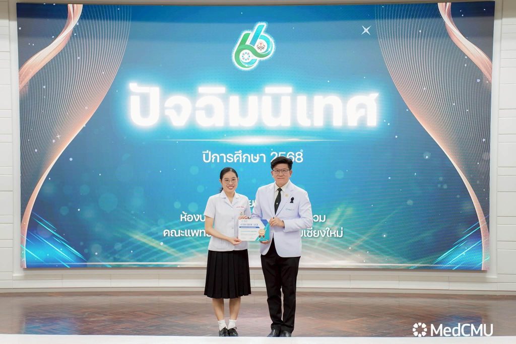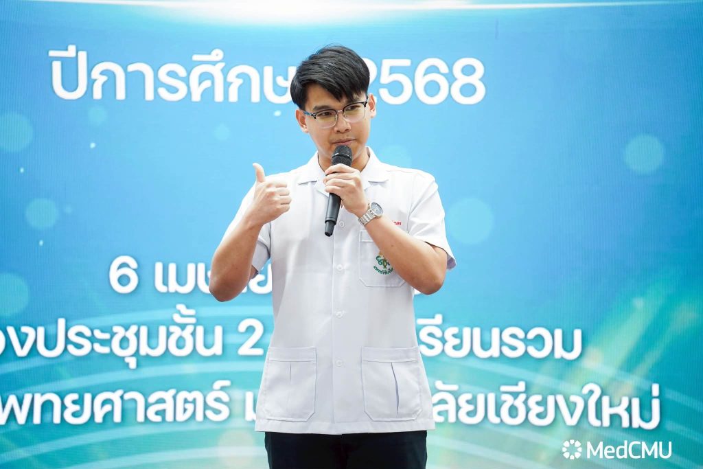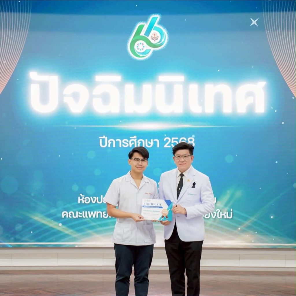 รศ.นพ.นเรนทร์ โชติรสนิรมิต คณบดีคณะแพทยศาสตร์ มช. เป็นประธานเปิดงานปัจฉิมนิเทศนักศึกษาแพทย์ชั้นปีที่ 6 ปีการศึกษา 2568 พร้อมกล่าวให้โอวาท และมอบรางวัลนักศึกษาดีเด่น รางวัล Best all around ให้แก่นักศึกษา