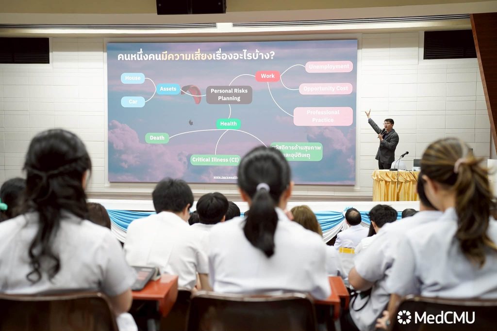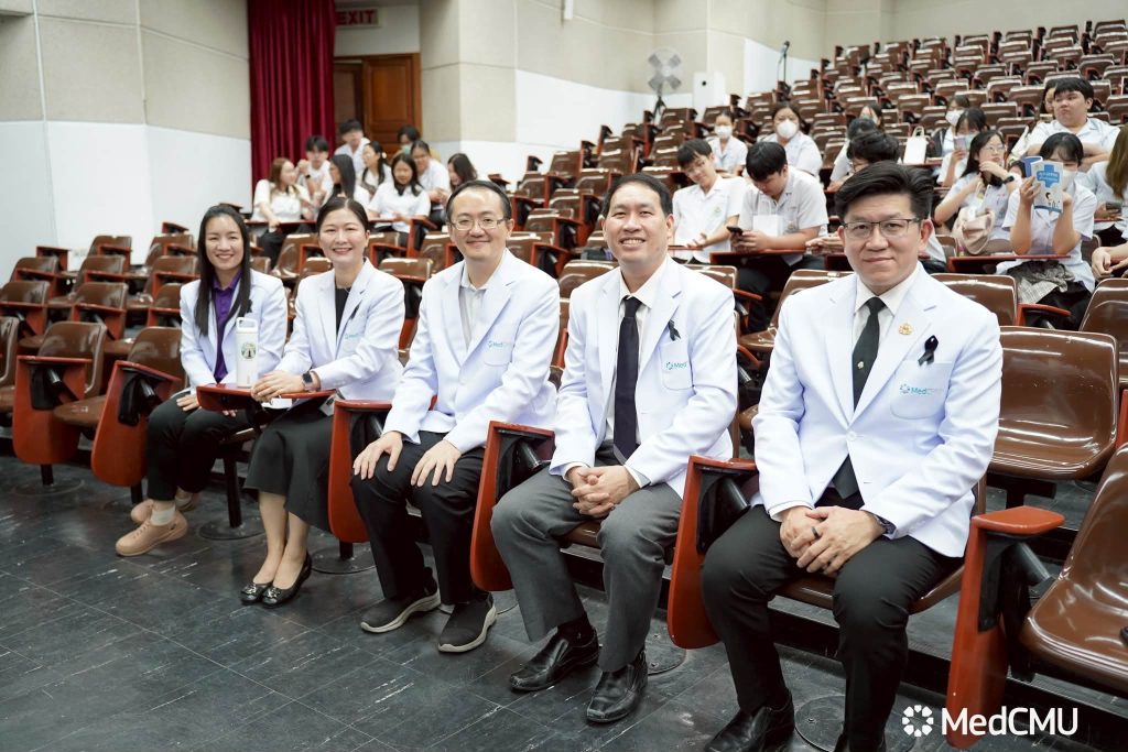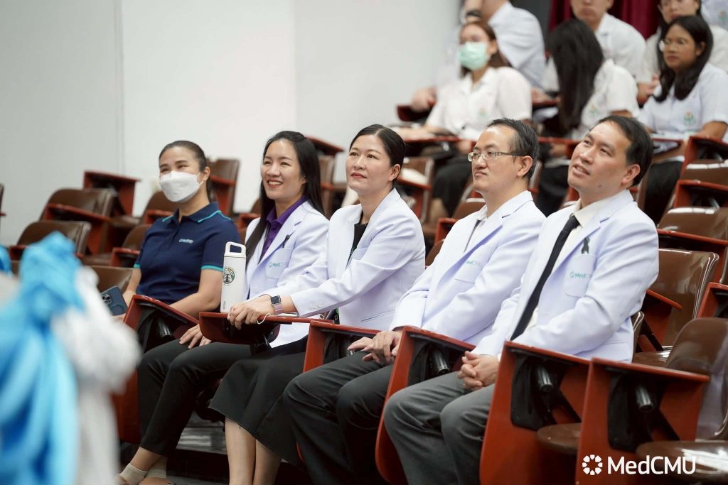 พร้อมกันนี้ภายในงานมีการบรรยายให้ความรู้แก่นักศึกษาแพทย์ฯ ในหัวข้อ “บทบาทของแพทยสภา และข้อควรระวังทางกฎหมายสำหรับแพทย์จบใหม่” วิทยากรโดย นพ.ภาสกร วันชัยจิระบุญ ผู้ช่วยเลขาธิการแพทยสภา หัวข้อ “การบริหารจัดการการเงิน ภาษี และการลงทุน สำหรับแพทย์ยุคใหม่” วิทยากรโดย นพ.ณัฐธนภพ อิศรเดช แพทย์ใช้ทุนศูนย์สารสนเทศชีวการแพทย์ และหัวข้อ “การเรียนรู้ตลอดชีวิตของแพทย์: บทบาทของ CME และ Digital Platfrom” วิทยากรจาก ศูนย์ศึกษาต่อเนื่อง ของแพทย์ แพทยสภา
