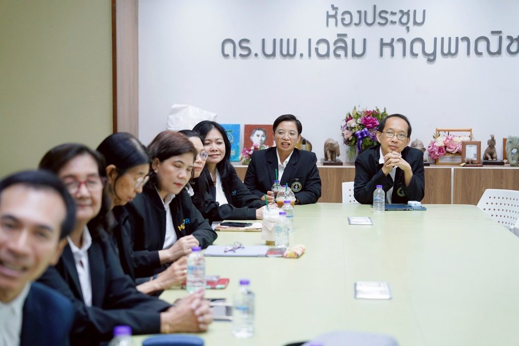 รศ.นพ.นเรนทร์ โชติรสนิรมิต คณบดีคณะแพทยศาสตร์ มช. พร้อมด้วย ศ.พญ.สุรินทร์พร ลิขิตเสถียร รองคณบดีด้านทรัพยากรมนุษย์และวัฒนธรรมองค์กร, ผศ.นพ.มนัสวี มะโนปัญญา และ รศ.ดร.นพ.บวร วิทยชำนาญกุล ผู้ช่วยคณบดีด้านทรัพยากรมนุษย์ ให้การต้อนรับ รศ.นพ.พงษ์ศักดิ์ น้อยพยัคฆ์ รักษาการแทนอธิการบดีมหาวิทยาลัยนวมินทราธิราช และคณะผู้บริหารคณะแพทยศาสตร์วชิรพยาบาล เข้าร่วมการศึกษาดูงาน และแลกเปลี่ยนเรียนรู้ด้านทรัพยากรมนุษย์ (HR) ในหัวข้อเรื่อง การยกระดับงานทรัพยากรมนุษย์ยุคใหม่ (HR Transformation) ,Performance management systems (PMS) ,Learning & development (L&D) ,People Engagement management (PEM) และ HR Data Analytics ภายใต้วิสัยทัศน์ “โรงเรียนแพทย์ในดวงใจเพื่อความยั่งยืนด้านสุขภาวะด้วยนวัตกรรม” ซึ่งครอบคลุมถึงการพัฒนาศักยภาพบุคลากร และการยกระดับระบบบริหารจัดการภายในองค์กรให้มีประสิทธิภาพสูงสุด
