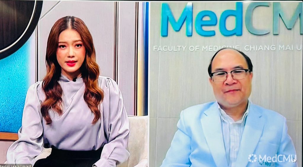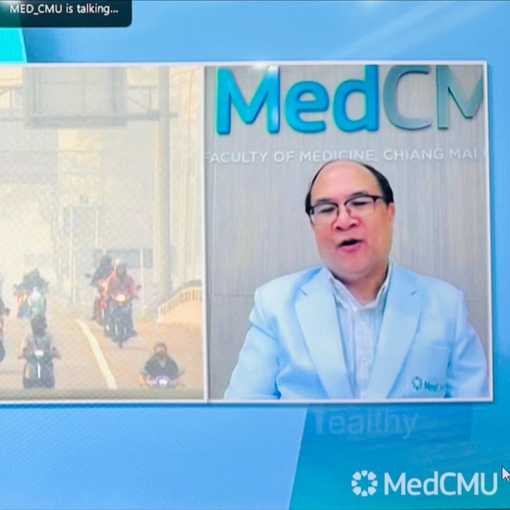 รศ.นพ.อรรถวุฒิ ดีสมโชค หัวหน้าหน่วยวิชาระบบการหายใจ เวชบำบัดวิกฤตและภูมิแพ้ ภาควิชาอายุรศาสตร์ คณะแพทยศาสตร์ มช. ให้สัมภาษณ์ และให้ข้อมูลเชิงสุขภาพ ผ่านระบบ Zoom Cloud Meeting ในรายการ คนสู้โรค Daily ในประเด็นเรื่อง “สถานการณ์หมอกควันภาคเหนือ” สถานีโทรทัศน์ Thai PBS