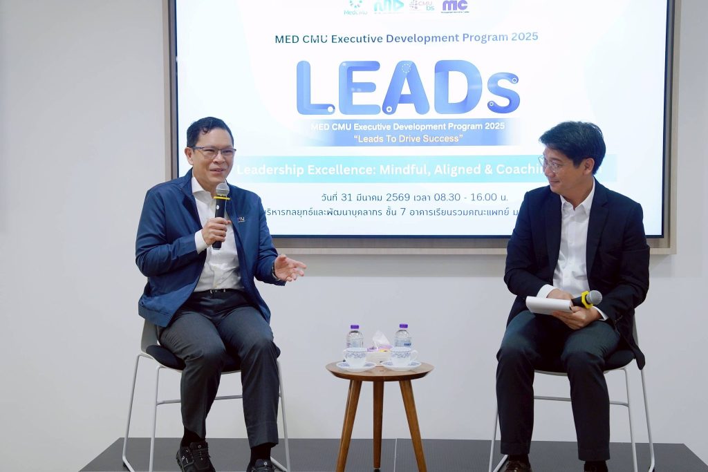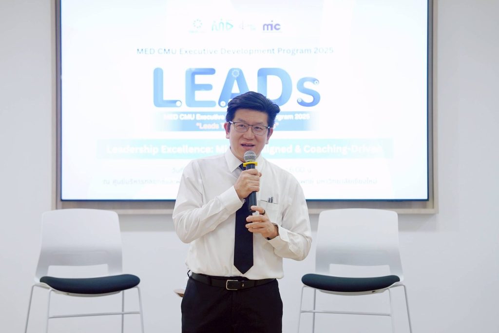 รศ.นพ.นเรนทร์ โชติรสนิรมิต คณบดีคณะแพทยศาสตร์ มช. เป็นประธานกล่าวเปิด โครงการ MED CMU Executive Development Program 2025 “LEADs To Drive Success” ให้แก่ คณะผู้บริหารฯ