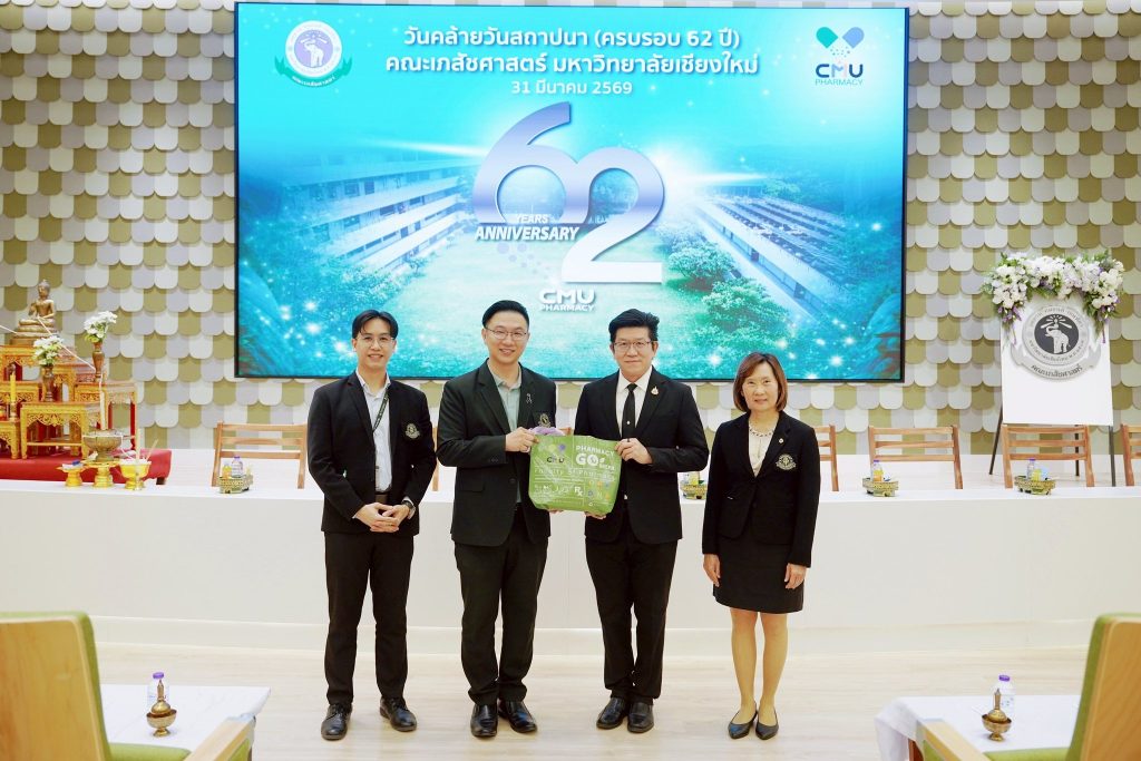 รศ.นพ.นเรนทร์ โชติรสนิรมิต คณบดีคณะแพทยศาสตร์ มช. พร้อมด้วย คุณมะลิวรรณ หินทอง เลขานุการคณะแพทยศาสตร์ มช. ร่วมแสดงความยินดี ในโอกาสครบรอบ 62 ปี วันคล้ายวันสถาปนาคณะเภสัชศาสตร์ มหาวิทยาลัยเชียงใหม่ ประจำปี 2569