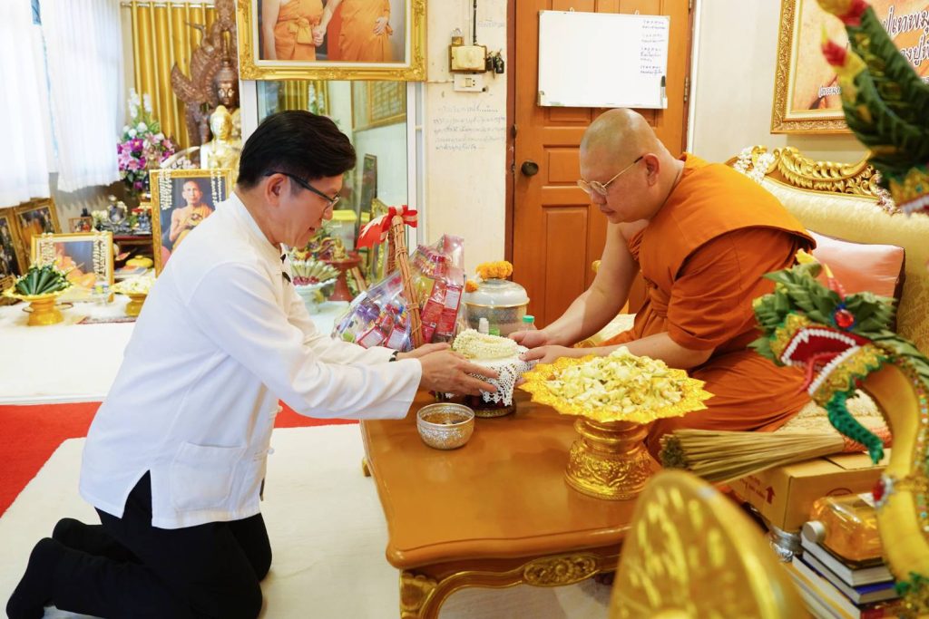 รศ.นพ.นเรนทร์ โชติรสนิรมิต คณบดีคณะแพทยศาสตร์ มช. พร้อมด้วย รศ.นพ.ณัฐพงศ์ โฆษชุณหนันท์ รองคณบดีด้านบริหารทั่วไป คณะแพทยศาสตร์ มช. และ คุณอรวรรณ เร่งเร็ว หัวหน้างานบริหารทั่วไป กราบนมัสการ และขอพร พระมหาบัณฑิต ญาณเมธี เจ้าอาวาสวัดคันธาราม เนื่องในเทศกาลวันสงกรานต์