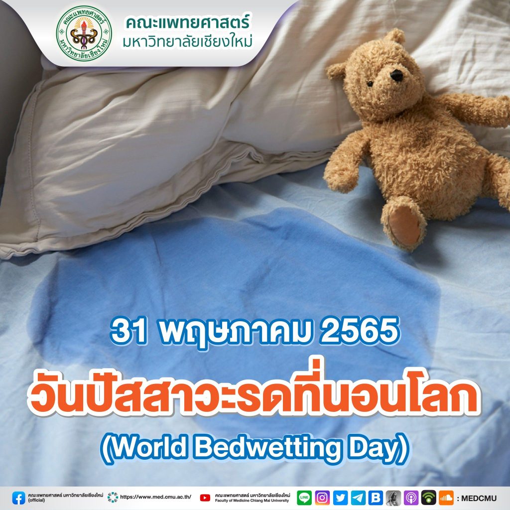 ?สมาคมควบคุมระบบขับถ่ายปัสสาวะเด็กนานาชาติ (ICCS) และสมาคมศัลยศาสตร์ระบบปัสสาวะเด็กแห่งทวีปยุโรป (ESPU) ได้กำหนดให้วันอังคาร สัปดาห์สุดท้ายของเดือนพฤษภาคม ของทุกปี เป็นวันปัสสาวะรดที่นอนโลก ซึ่งในปีนี้ ตรงกับวันอังคารที่ 31 พฤษภาคม 2565 มีวัตถุประสงค์เพื่อรณรงค์ให้ประชาชนทั่วไป ได้รู้จัก เข้าใจ และตระหนักถึงความสำคัญต่อการรักษาภาวะปัสสาวะรดที่นอนจากแพทย์ผู้เชี่ยวชาญที่เหมาะสม