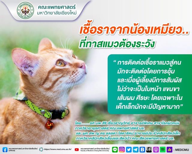 ขอขอบคุณข้อมูลจาก: รศ.นพ.สิริ เชี่ยวชาญวิทย์ อาจารย์พิเศษ สาขาโรคผิวหนัง ภาควิชาอายุรศาสตร์ คณะแพทยศาสตร์ มช. และ ผศ.สพ.ญ.ดร.ชลลดา โสดารัตน์ อาจารย์ประจำคลินิกสัตว์เล็ก ภาควิชาคลินิกสัตว์เลี้ยงและสัตว์ป่า คณะสัตวแพทยศาสตร์ มช.