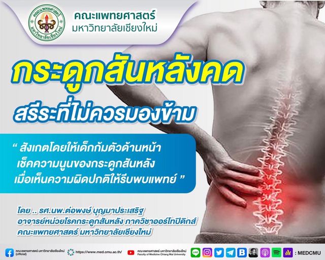 ขอขอบคุณข้อมูลจาก: รศ.นพ.ต่อพงษ์ บุญมาประเสริฐ อาจารย์หน่วยโรคกระดูกสันหลัง ภาควิชาออร์โทปิดิกส์ คณะแพทยศาสตร์ มหาวิทยาลัยเชียงใหม่