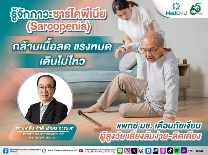 แพทย์ มช. เตือน! กล้ามเนื้อผู้สูงวัยเสื่อมถอยได้ ไม่ใช่แค่ “สูงอายุแล้วอ่อนแรง” แต่เสี่ยงล้มง่าย พึ่งพิงคนอื่นเร็วขึ้น แนะตรวจคัดกรอง-กินโปรตีน-ออกแรงต้านตั้งแต่วัยกลางคน